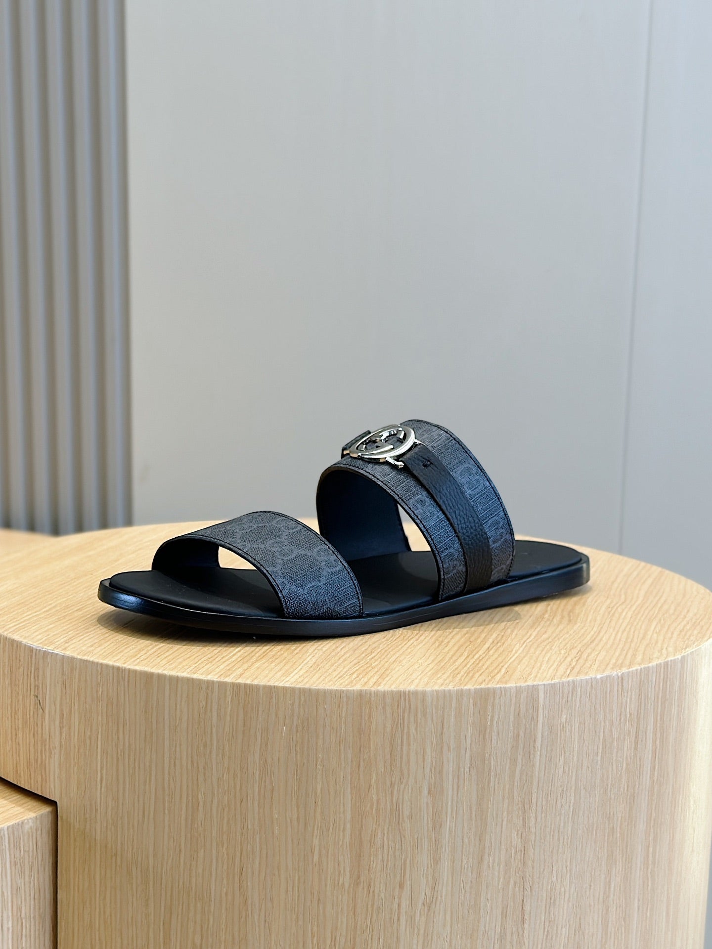 GG Men's Interlocking G Sandals Black Cowhide 547646