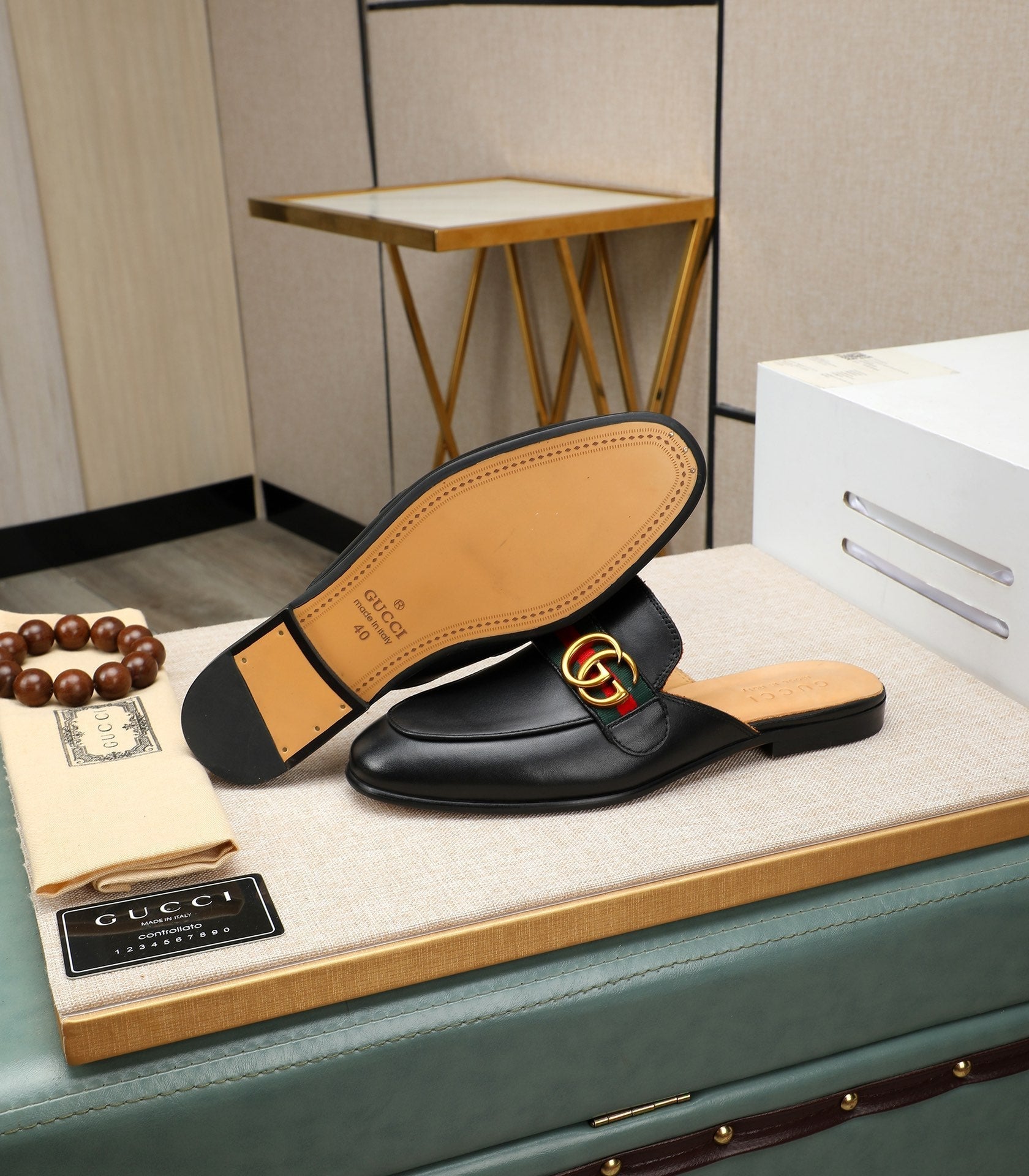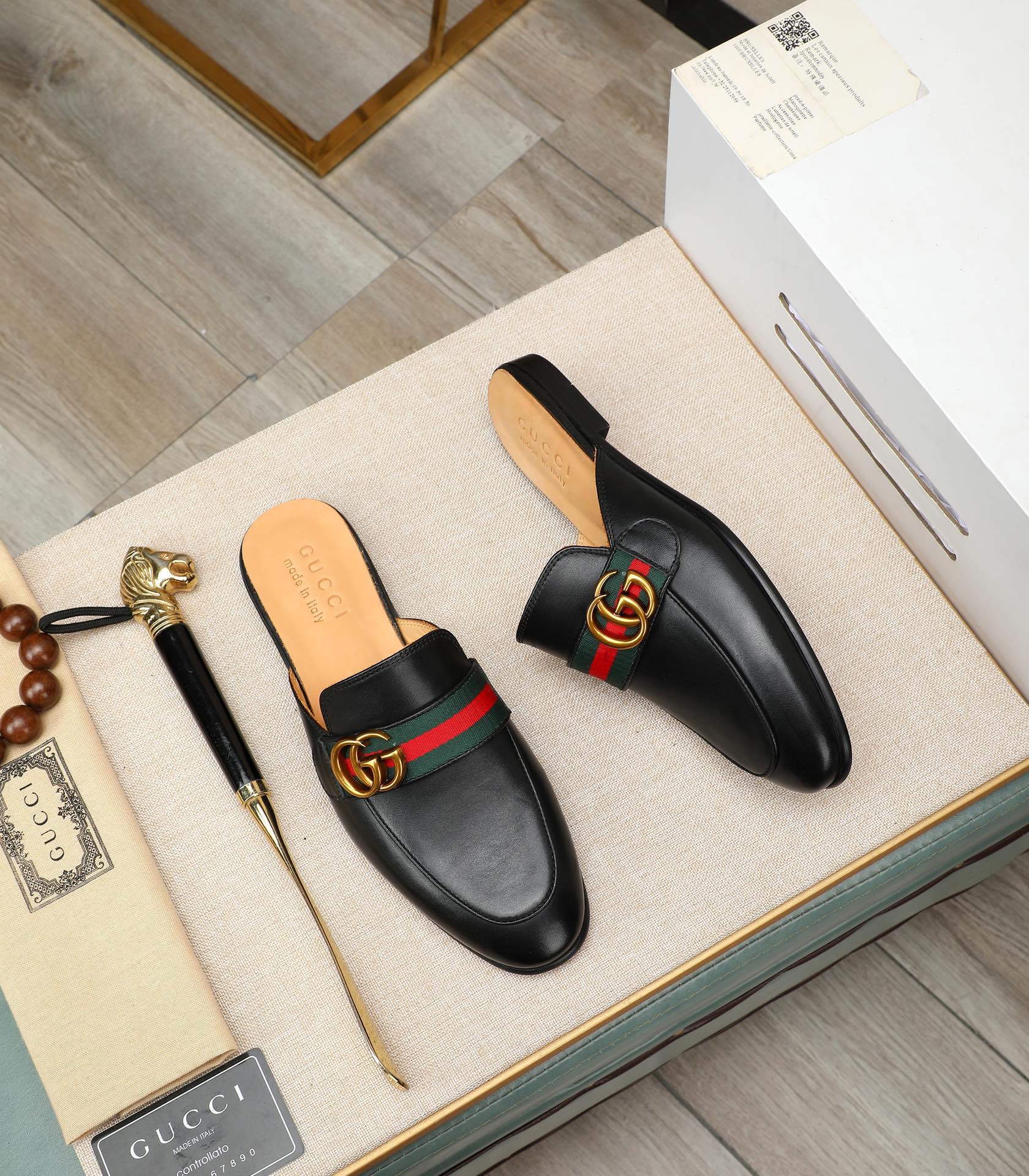 GG Men's Interlocking GG Mule Black Cowhide 111485