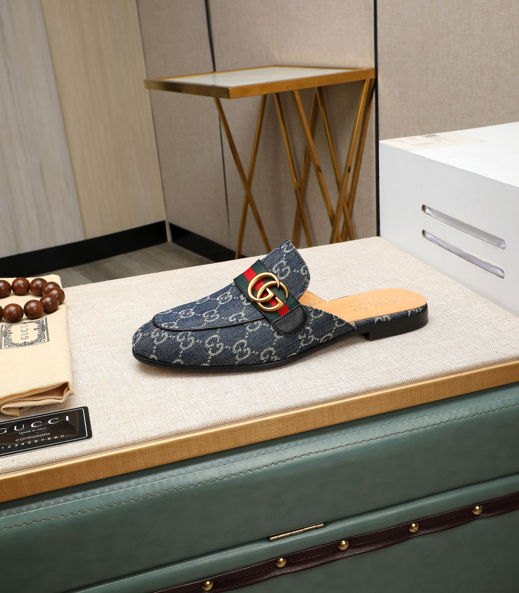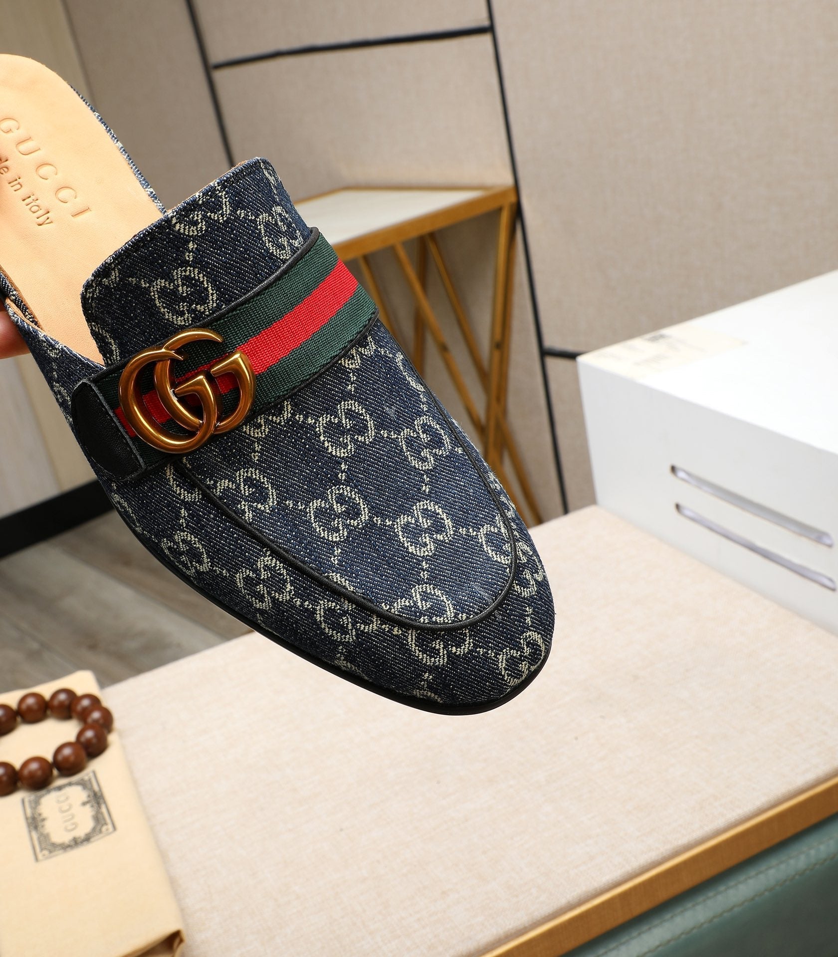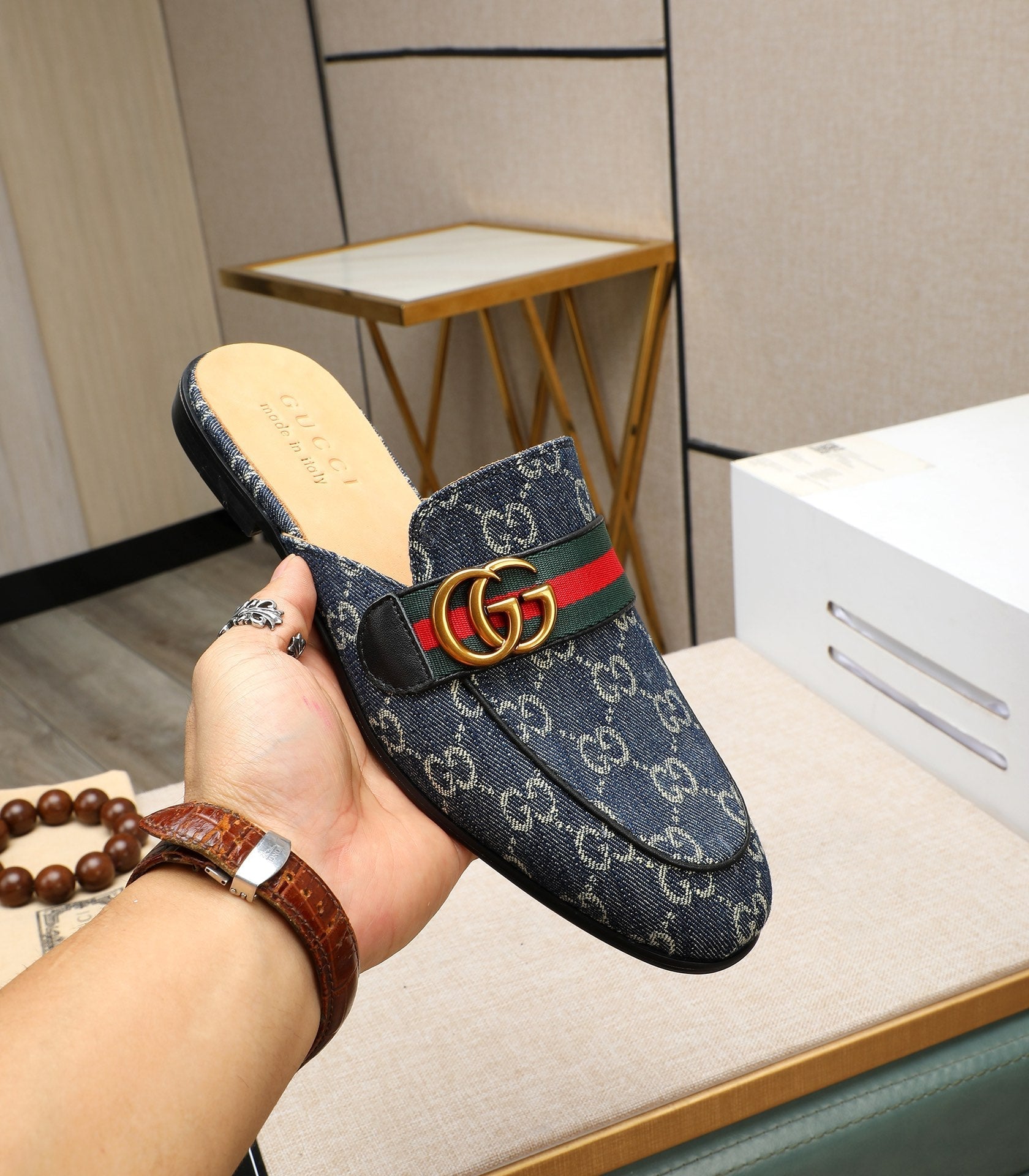 GG Men's Interlocking GG Mule Blue Denim 111476