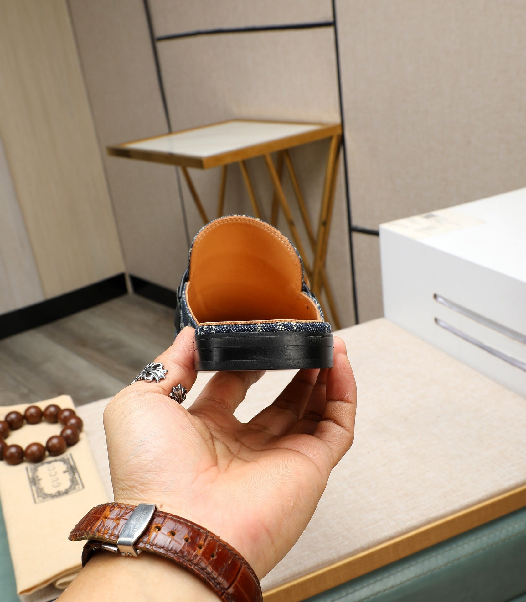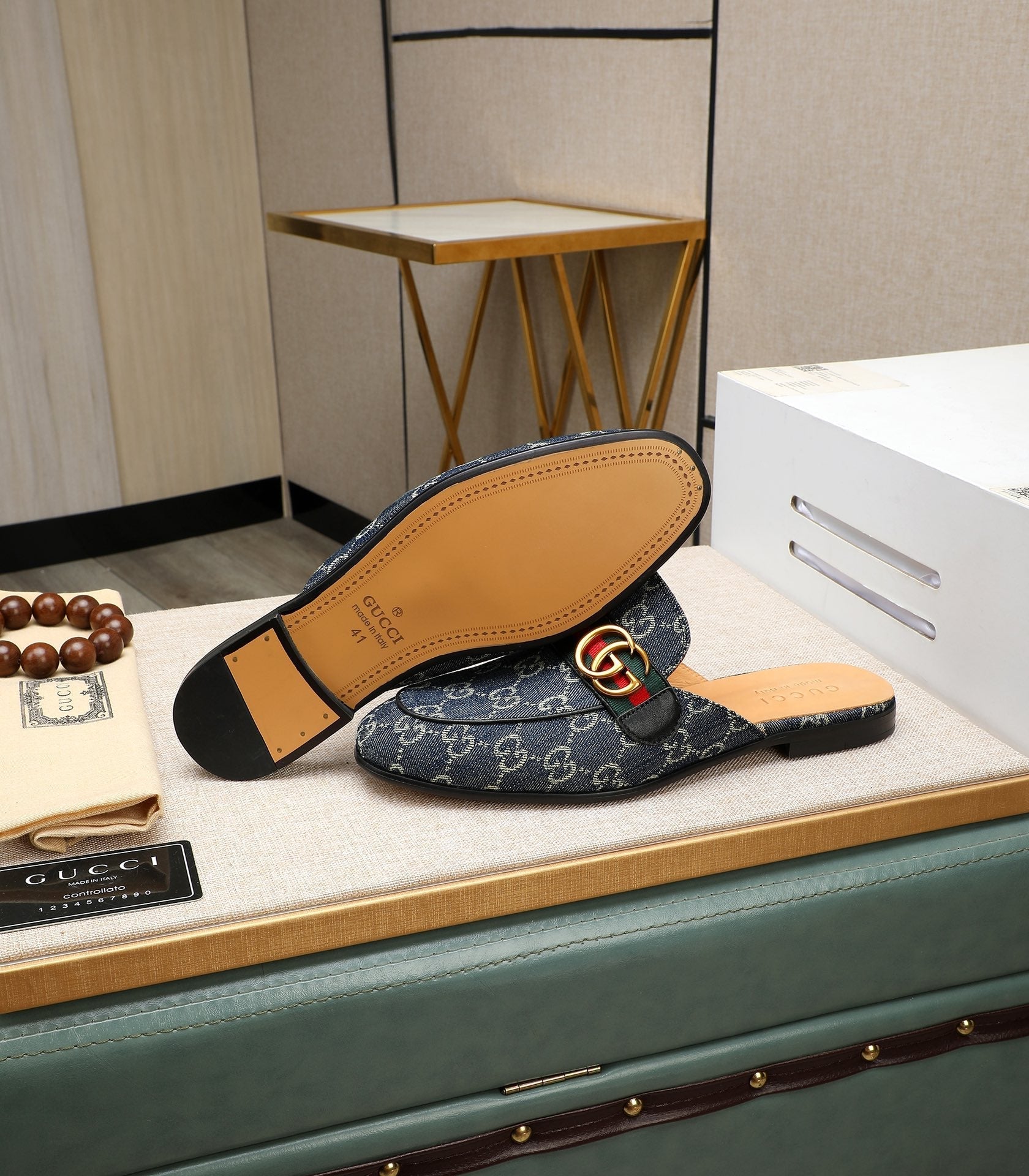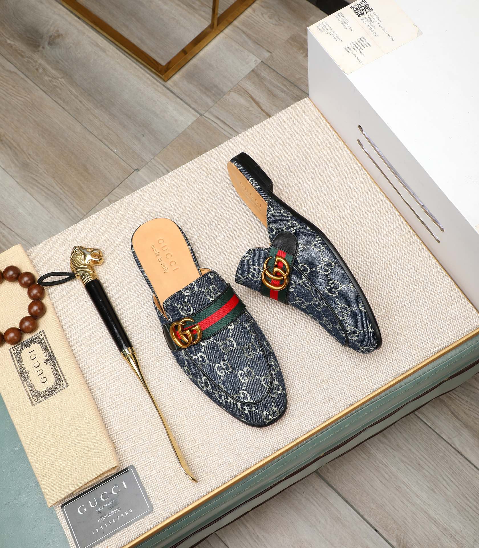 GG Men's Interlocking GG Mule Blue Denim 111476