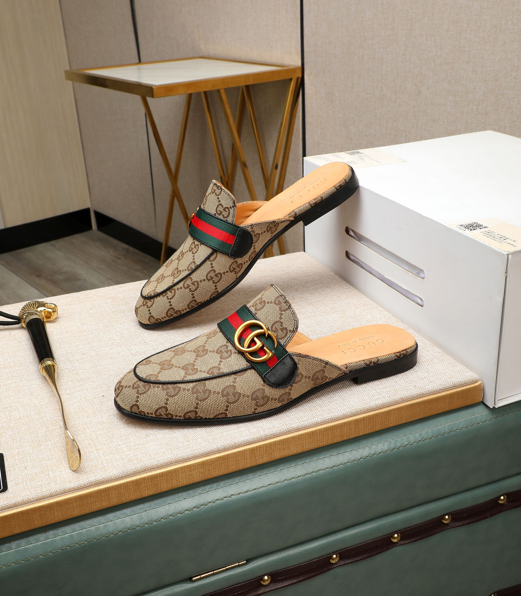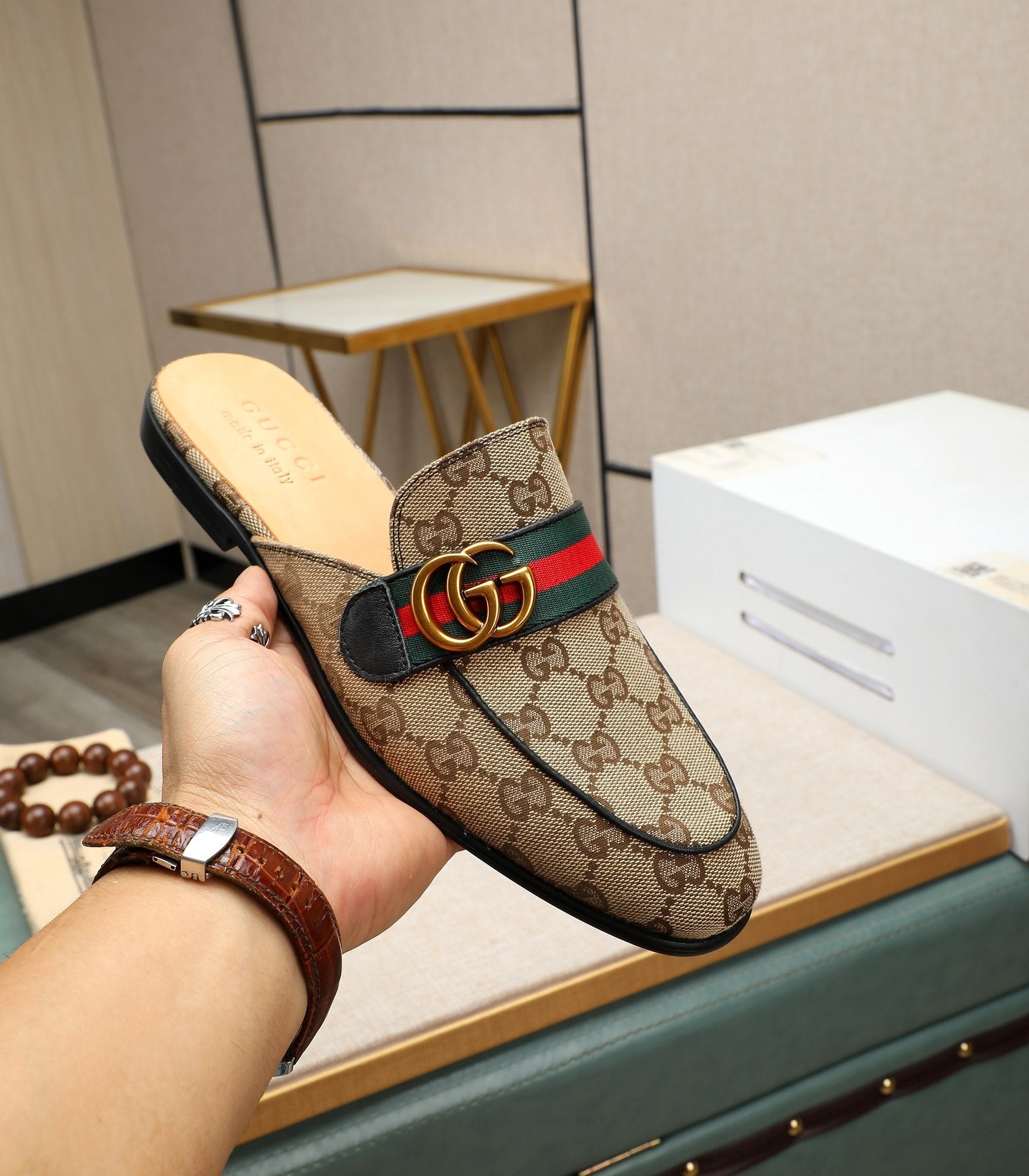 GG Men's Interlocking GG Mule Brown Denim 111477