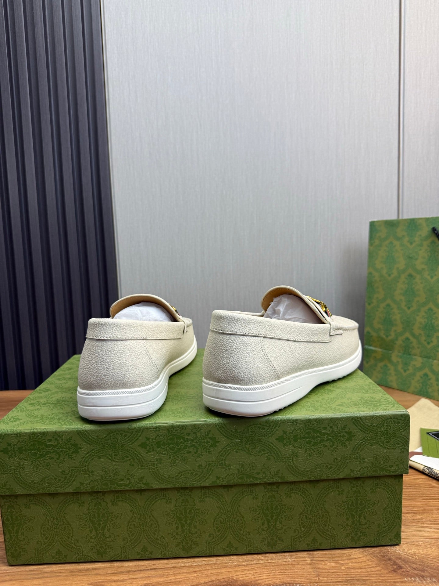 GG Men's Leather Loafers White Calfskin 587560