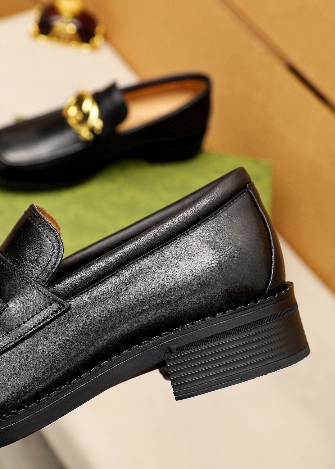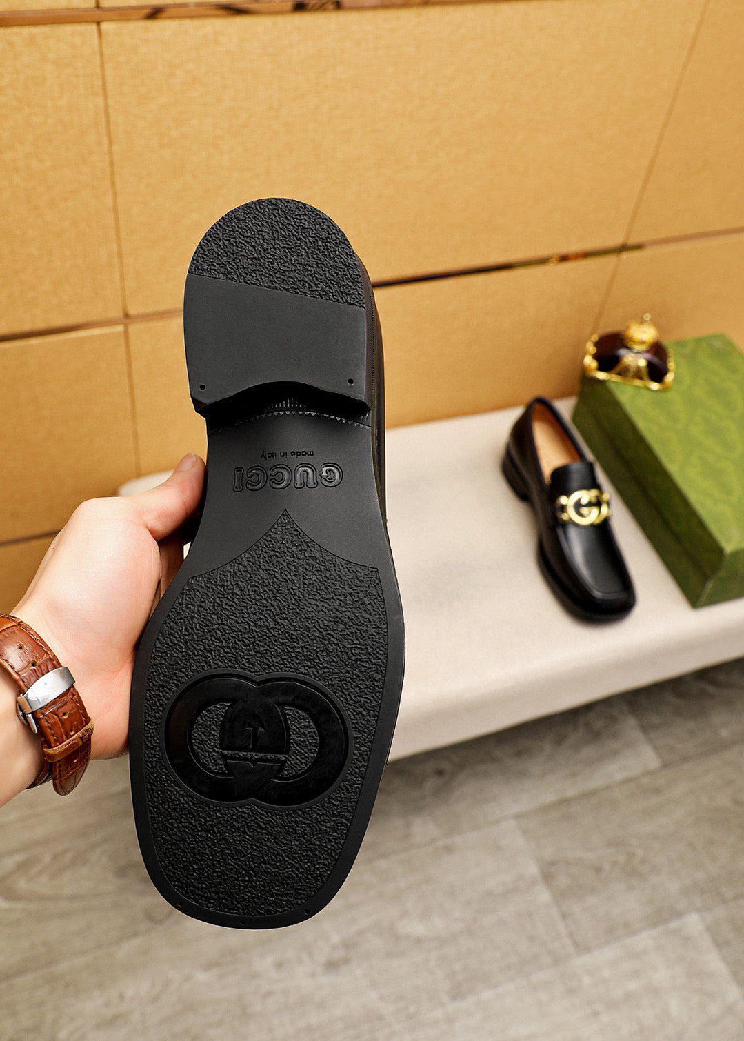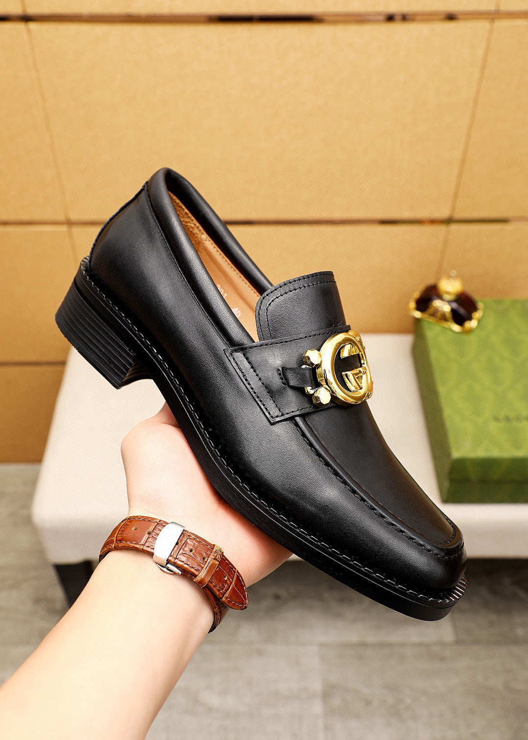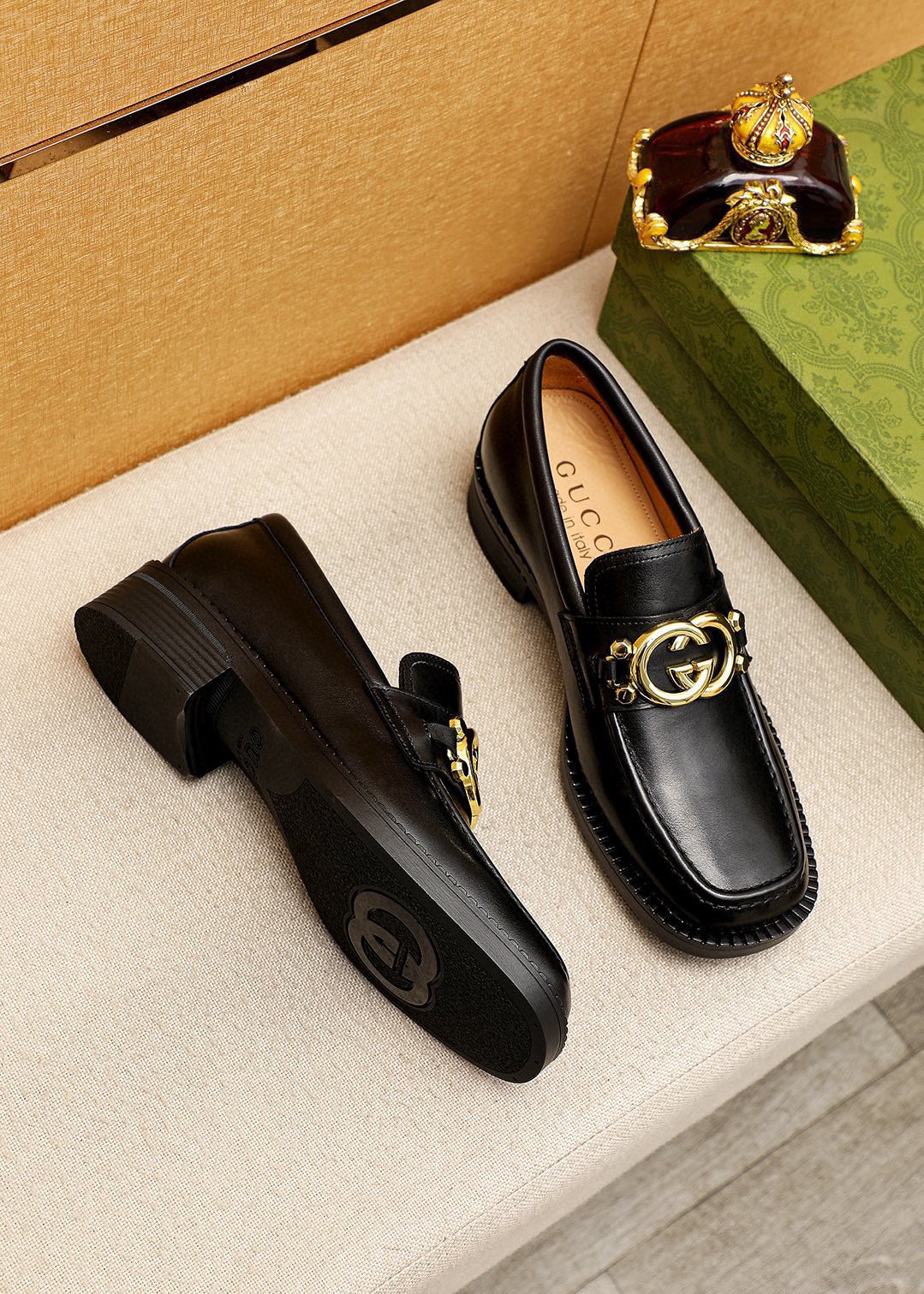 GG Men's Loafer Black GG Gold Cowhide 736977