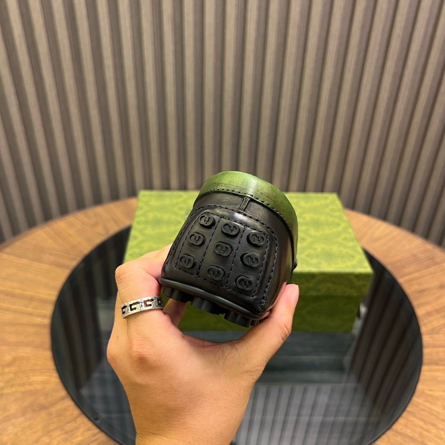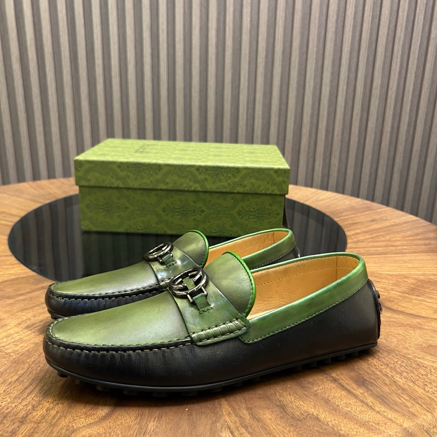 GG Men's Loafer Black mix Green Cowhide 731292