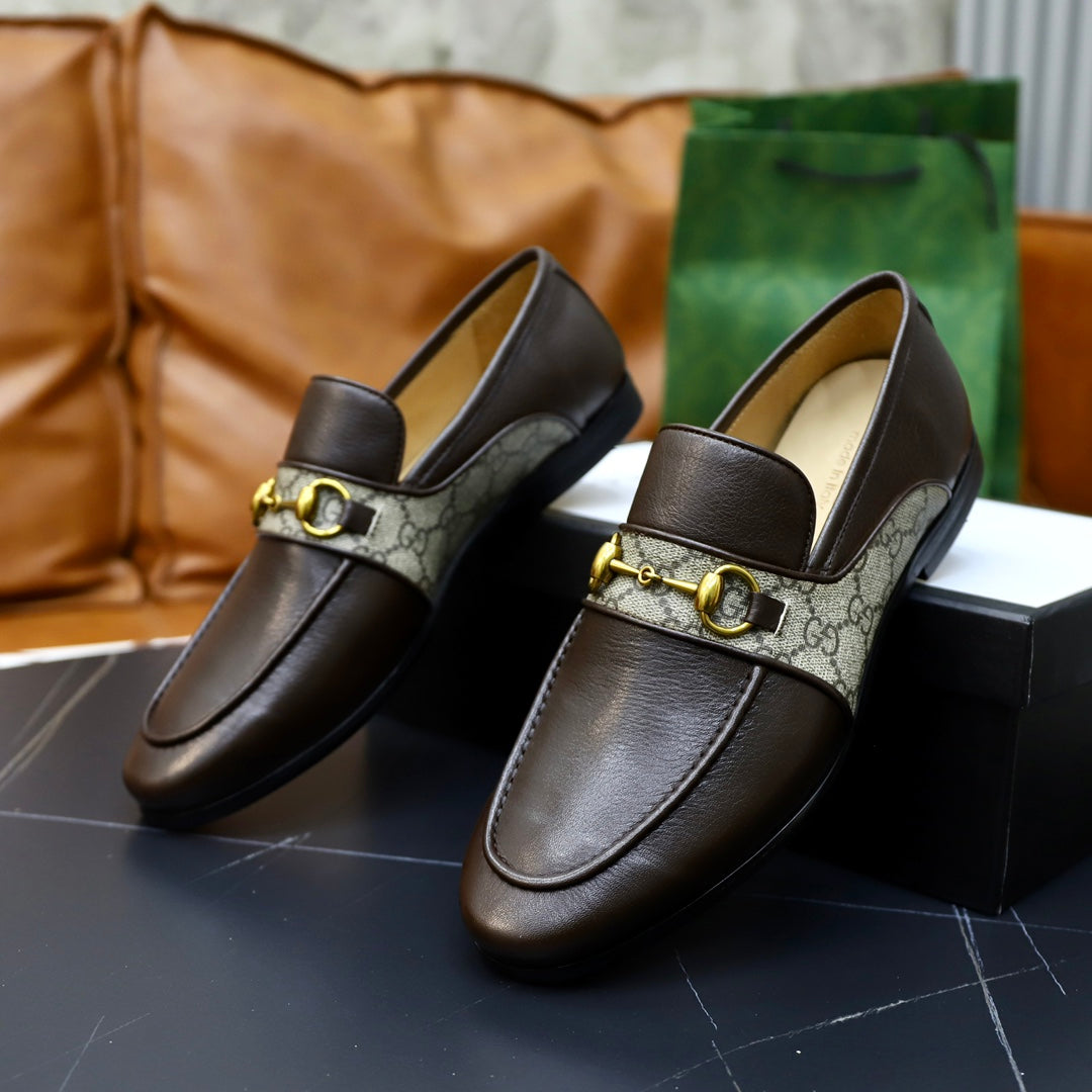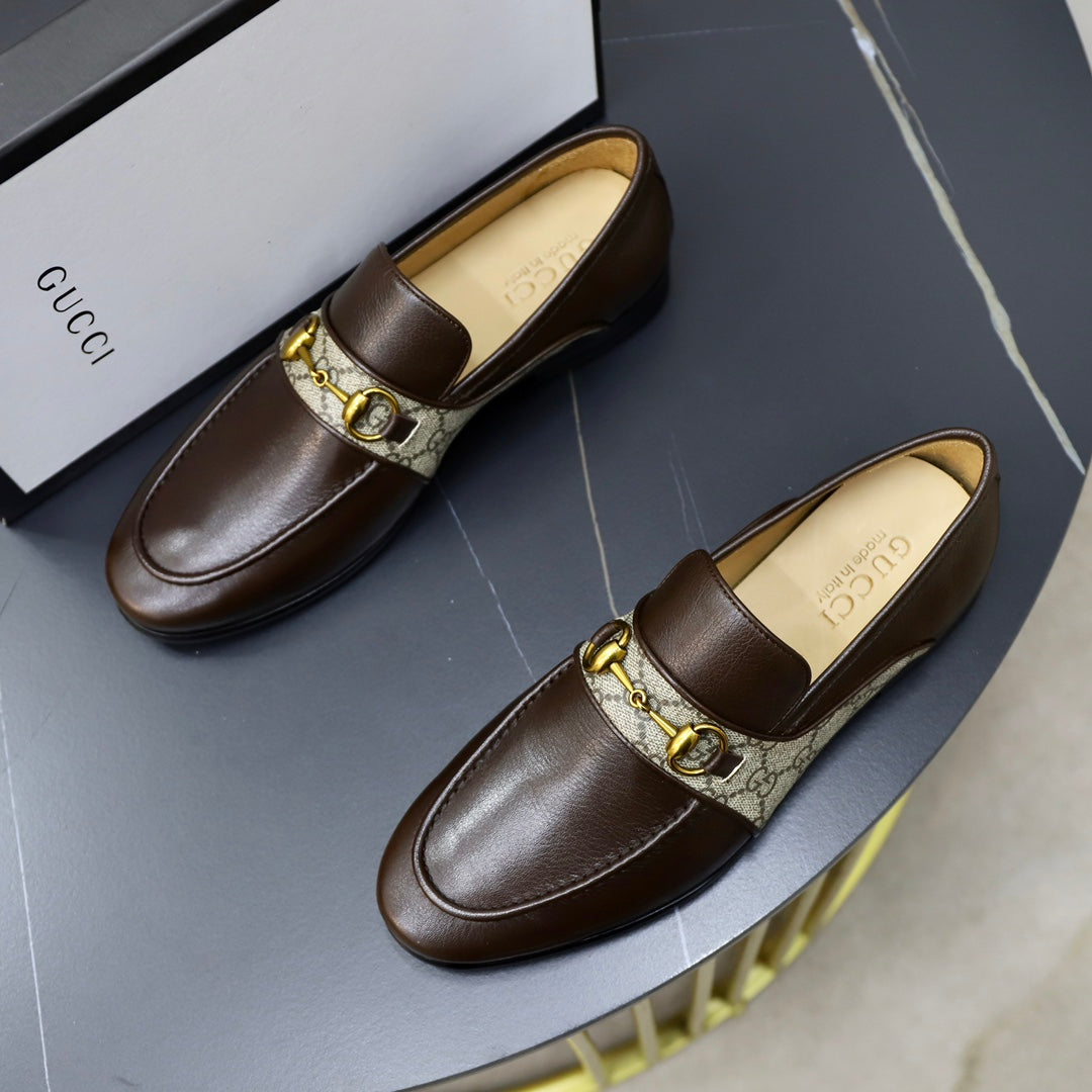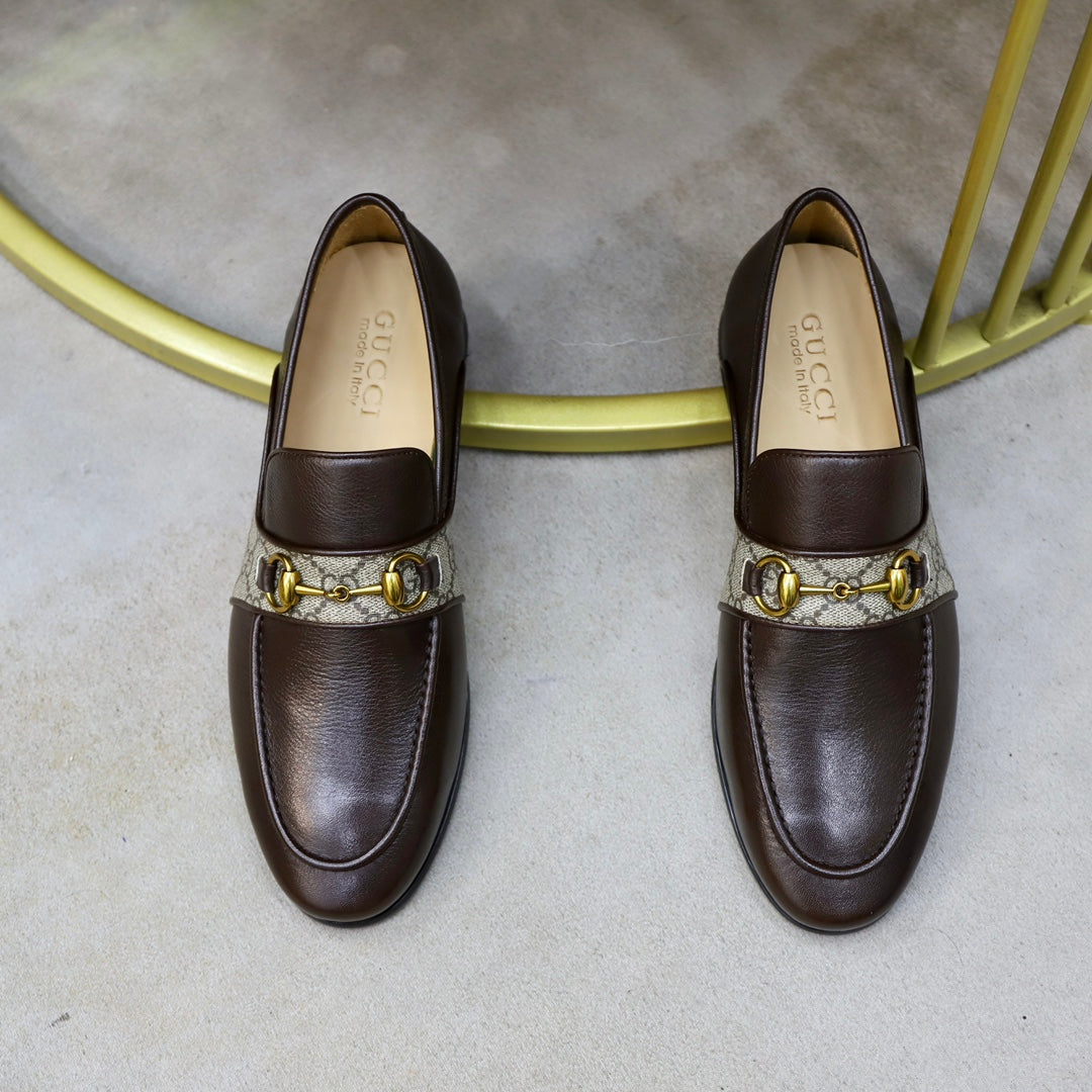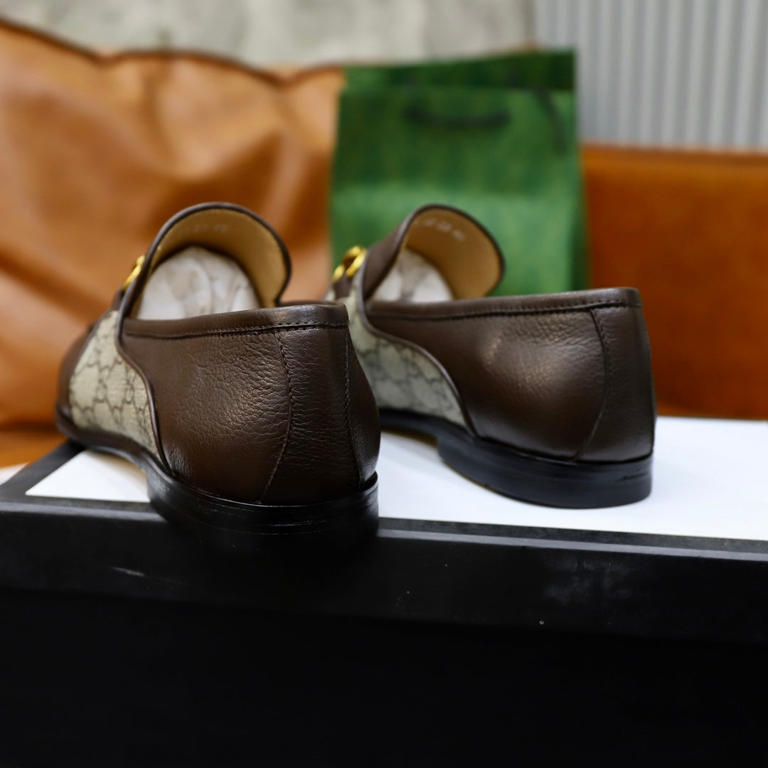 GG Men's Loafer Brown Cowhide Canvas 551267