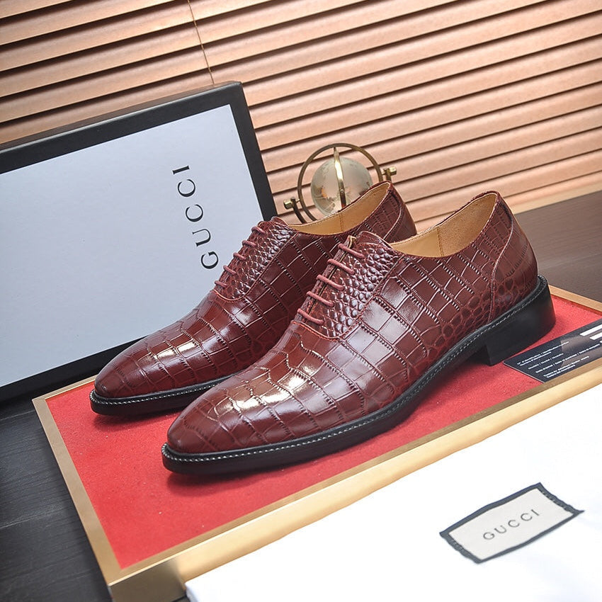 GG Men's Loafer Brown Embossed Cowhide 526094