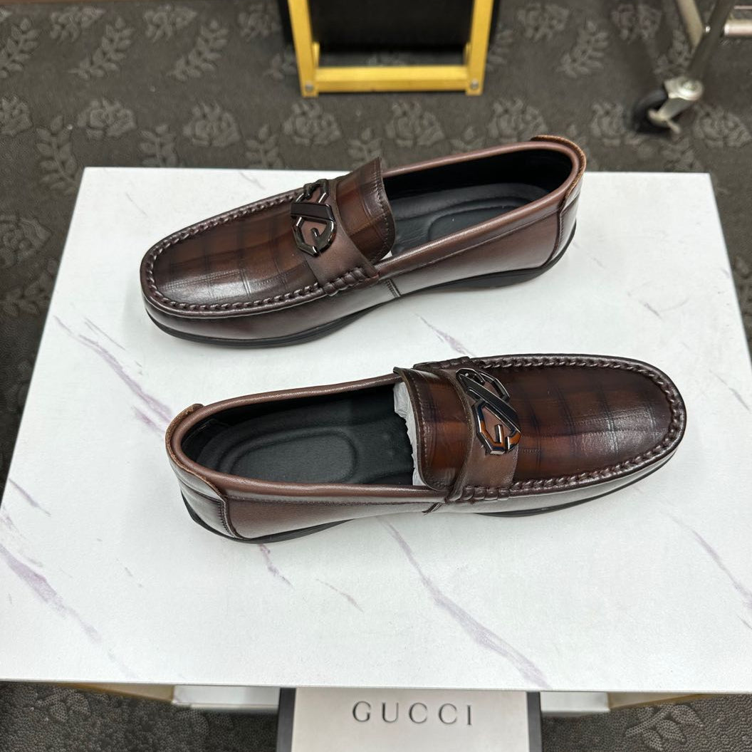GG Men's Loafer Brown Embossed Cowhide 532511