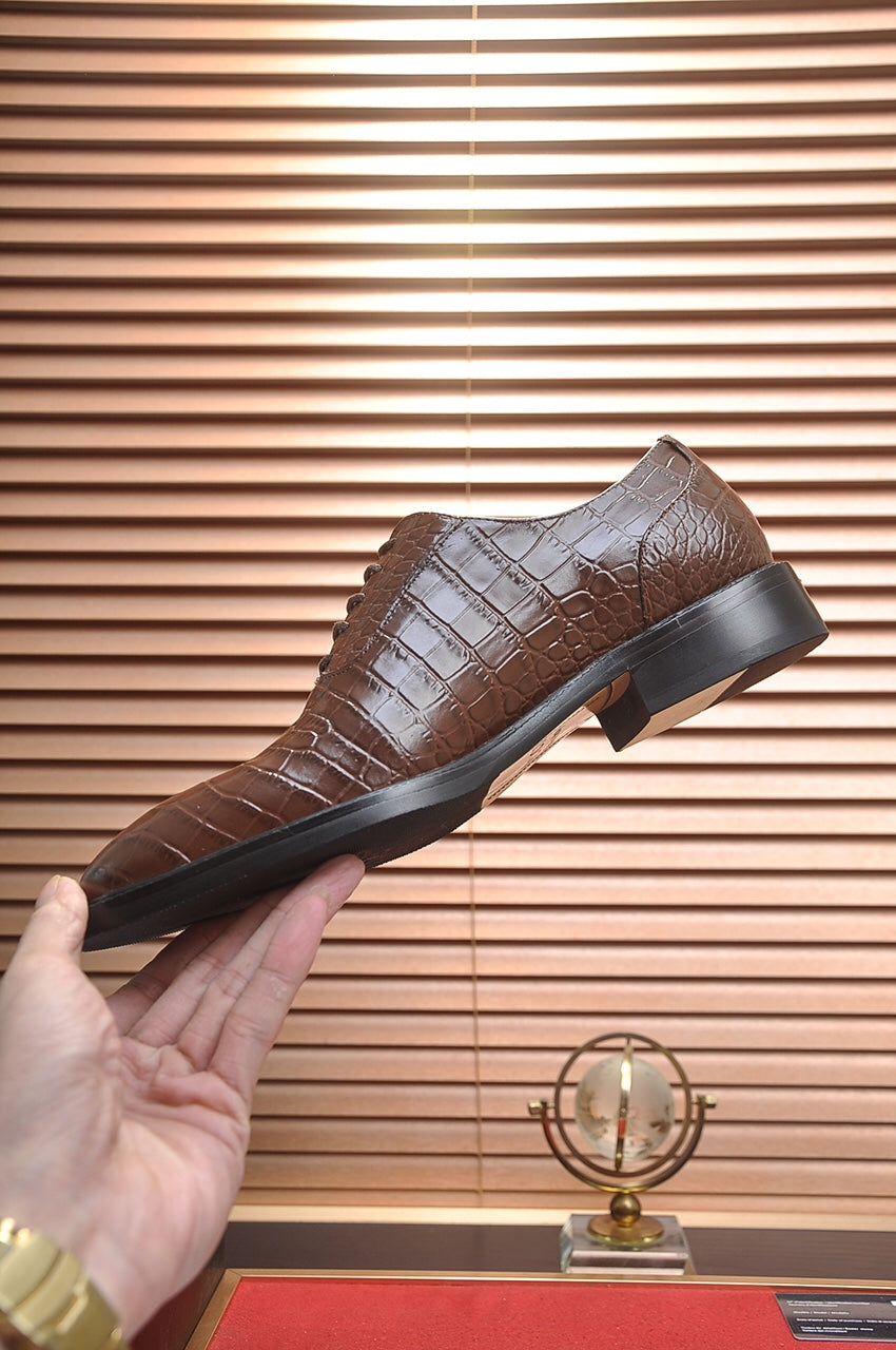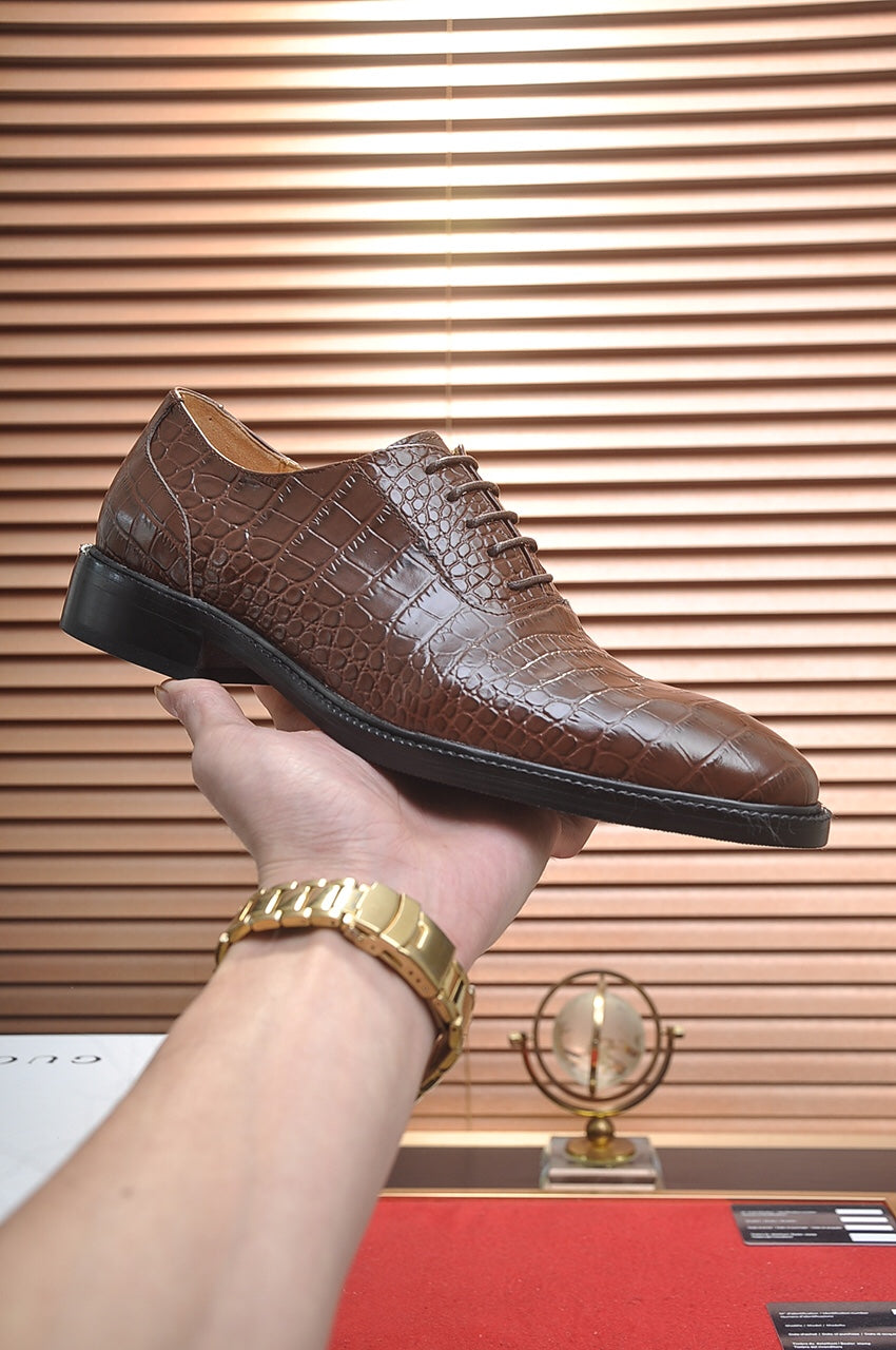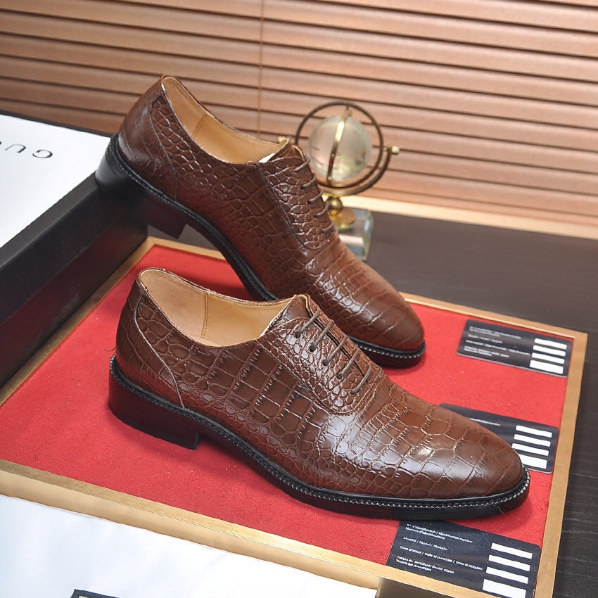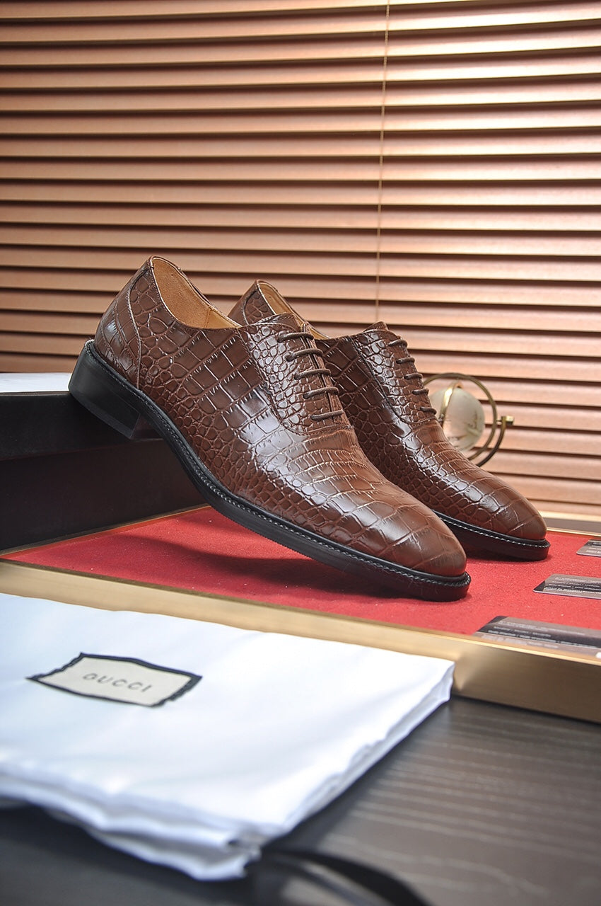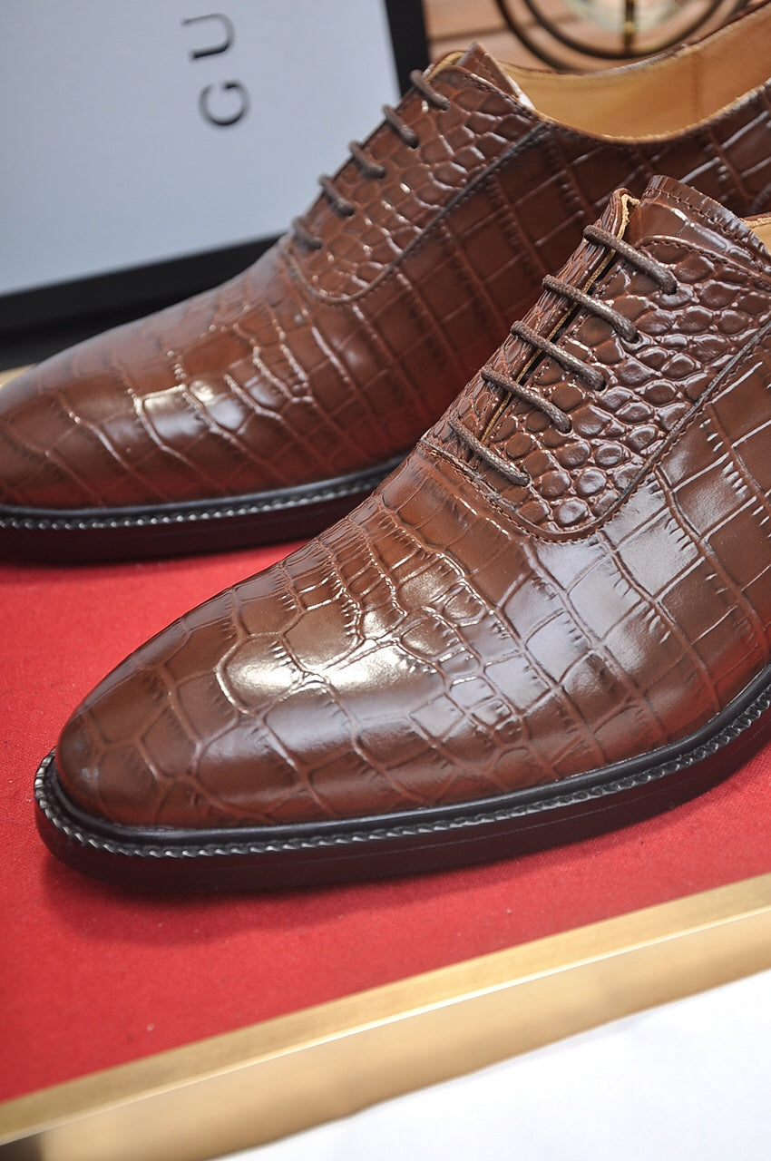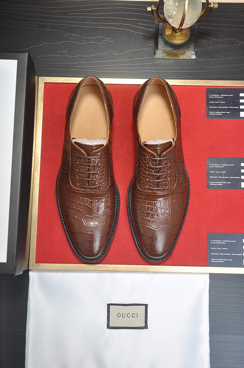 GG Men's Loafer Dark Brown Embossed Cowhide 526095