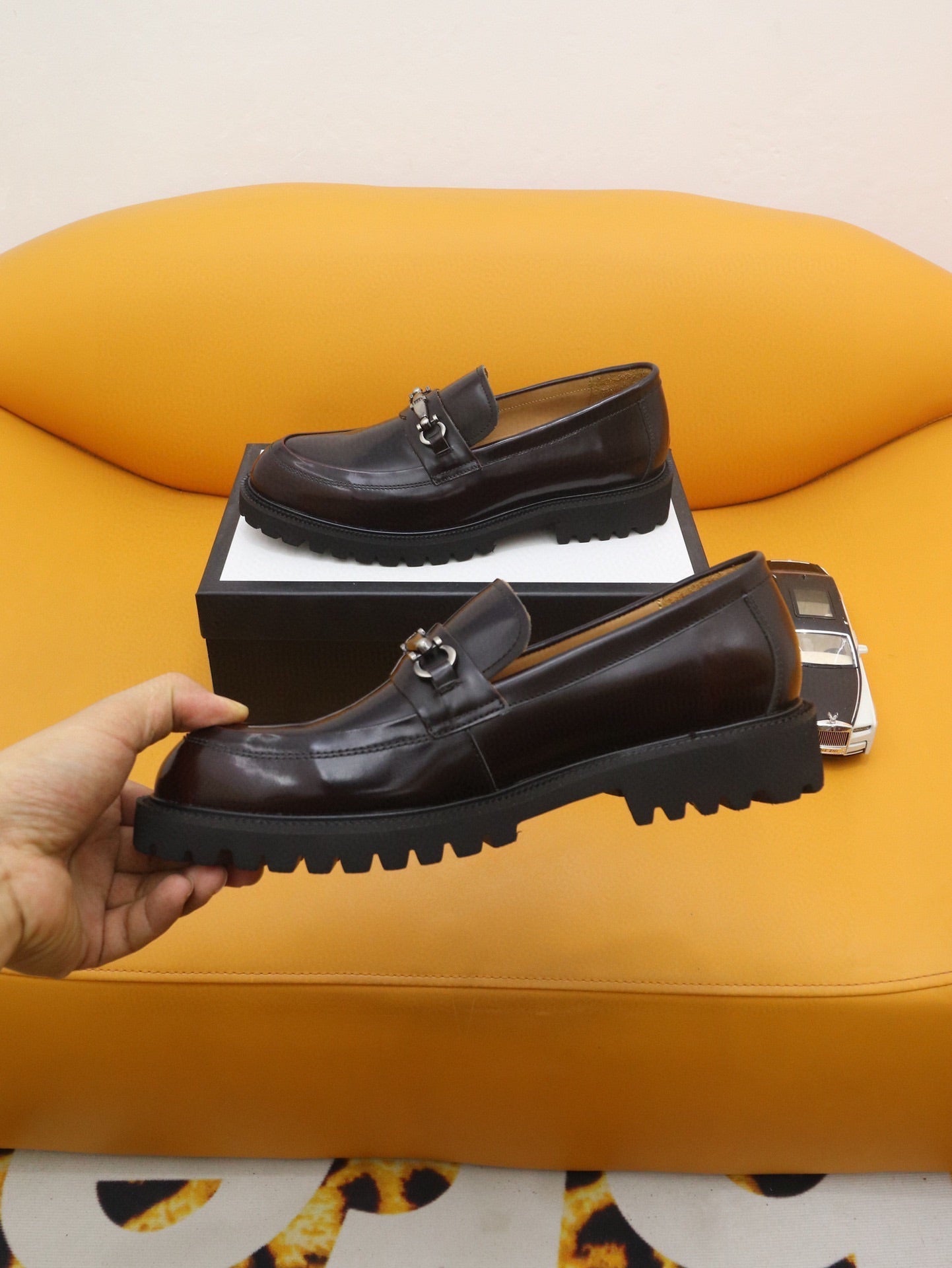 GG Men's Loafer Dark Brown Patent Leather 524061