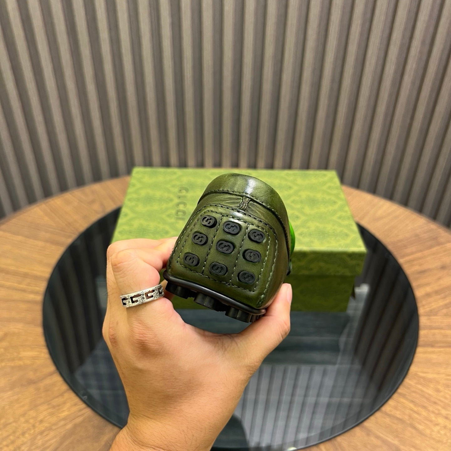 GG Men's Loafer Green Cowhide 731293