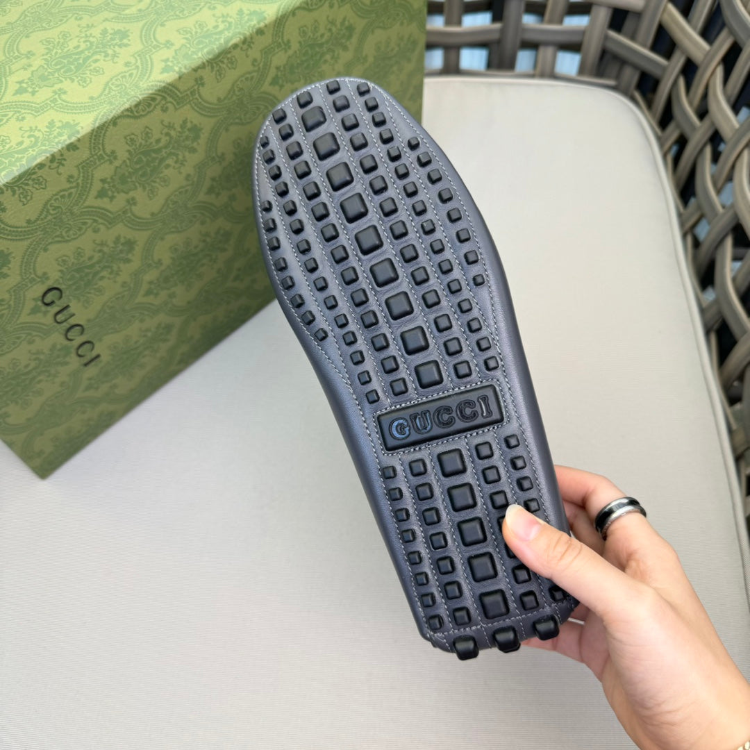 GG Men's Loafer Grey Canvas Cowhide 537557