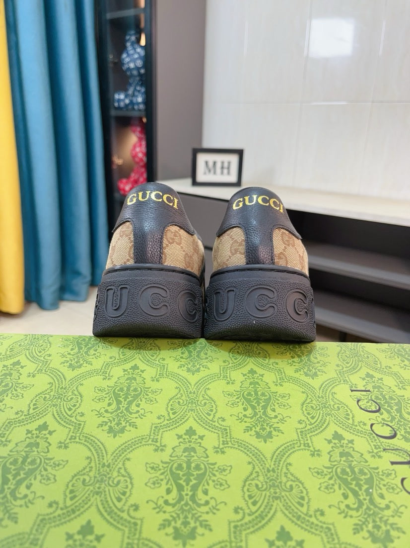 GG Men's Platform Sneaker Black Brown Cowhide 523420