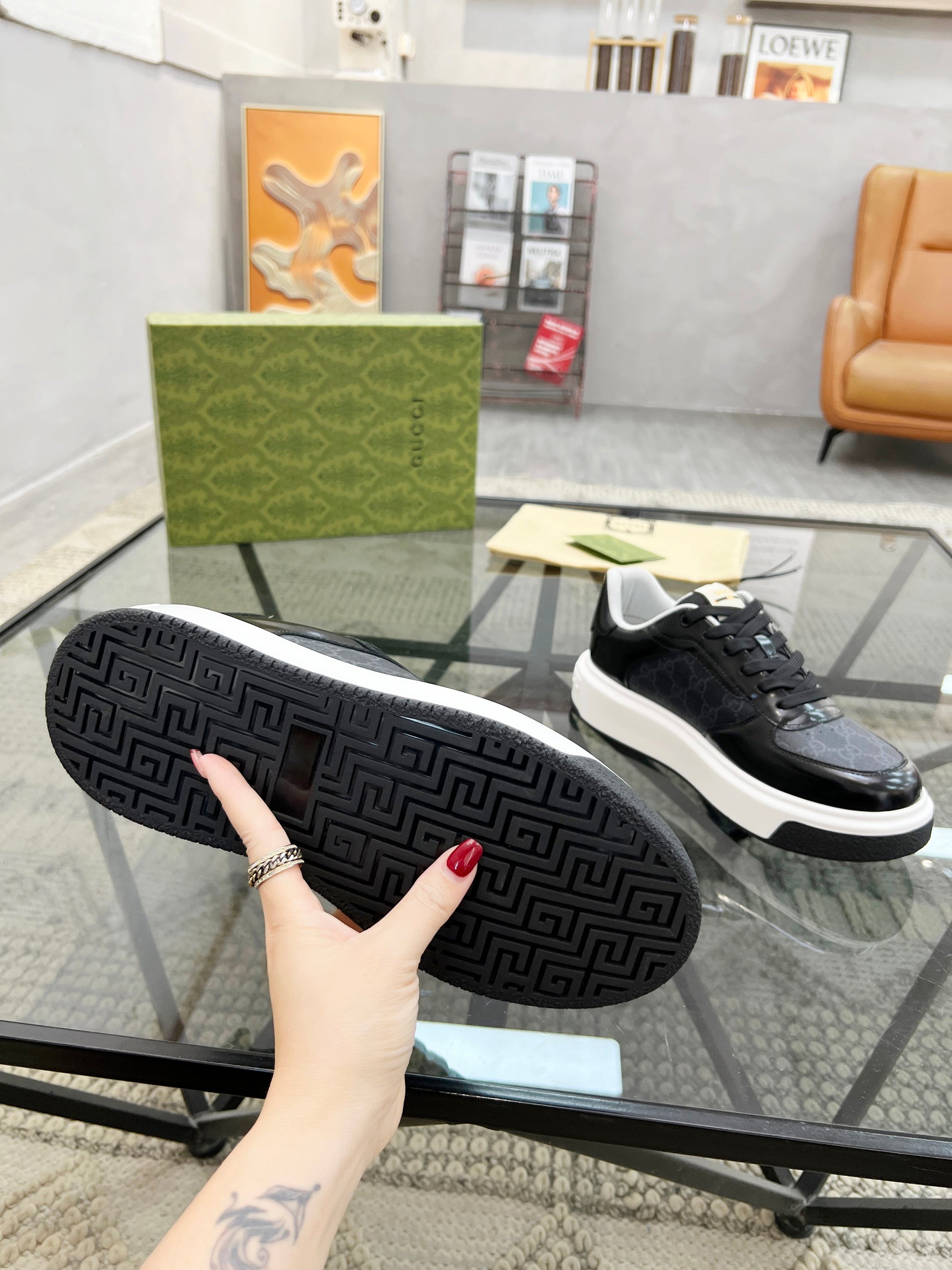 GG Men's Platform Sneaker Black Patent Leather 523472