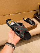 GG Men's Sandals Slide Green Black Leather