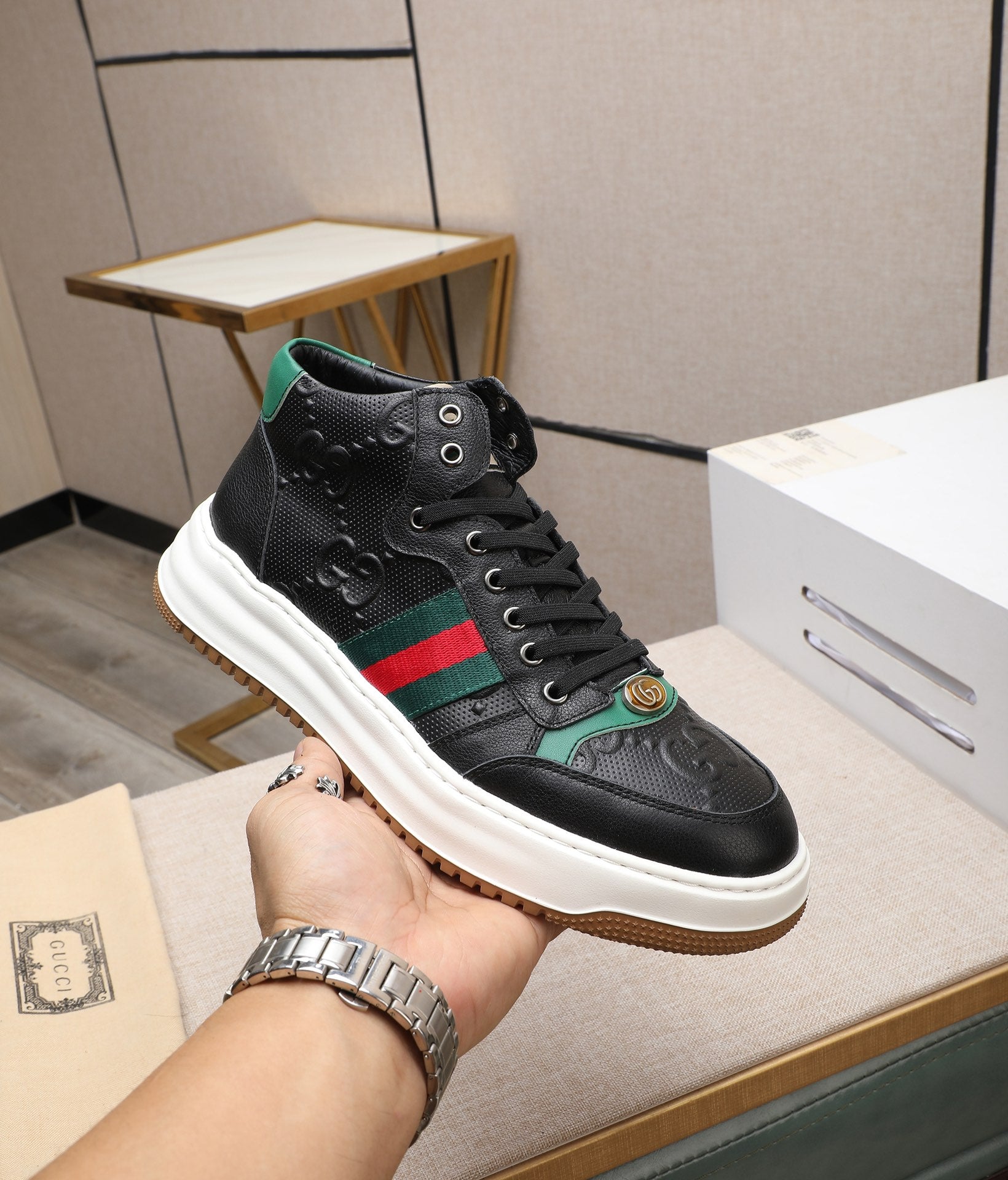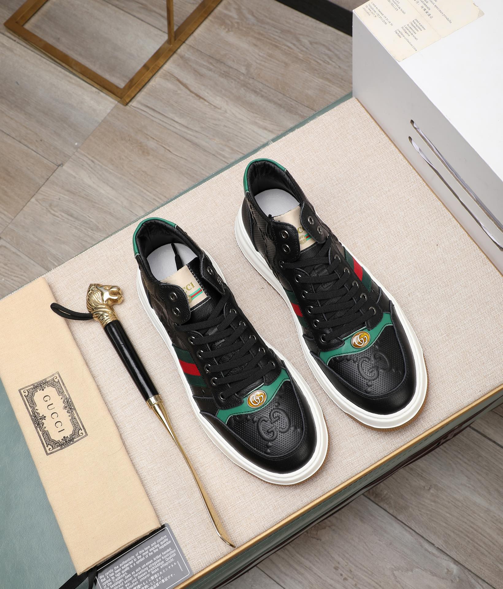 GG Men's Screener Sneaker Black Cowhide 440160