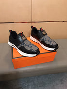 GG Men's Slip on Black Blue Cowhide Canvas 530403
