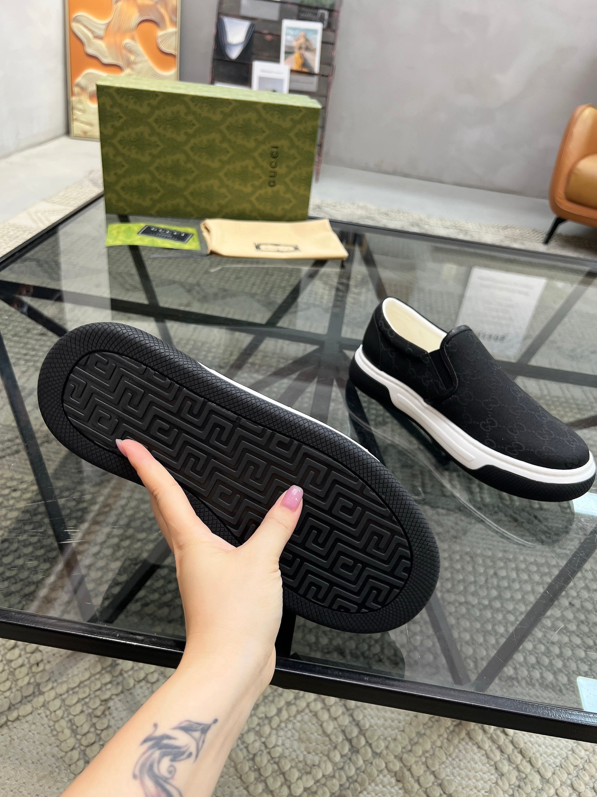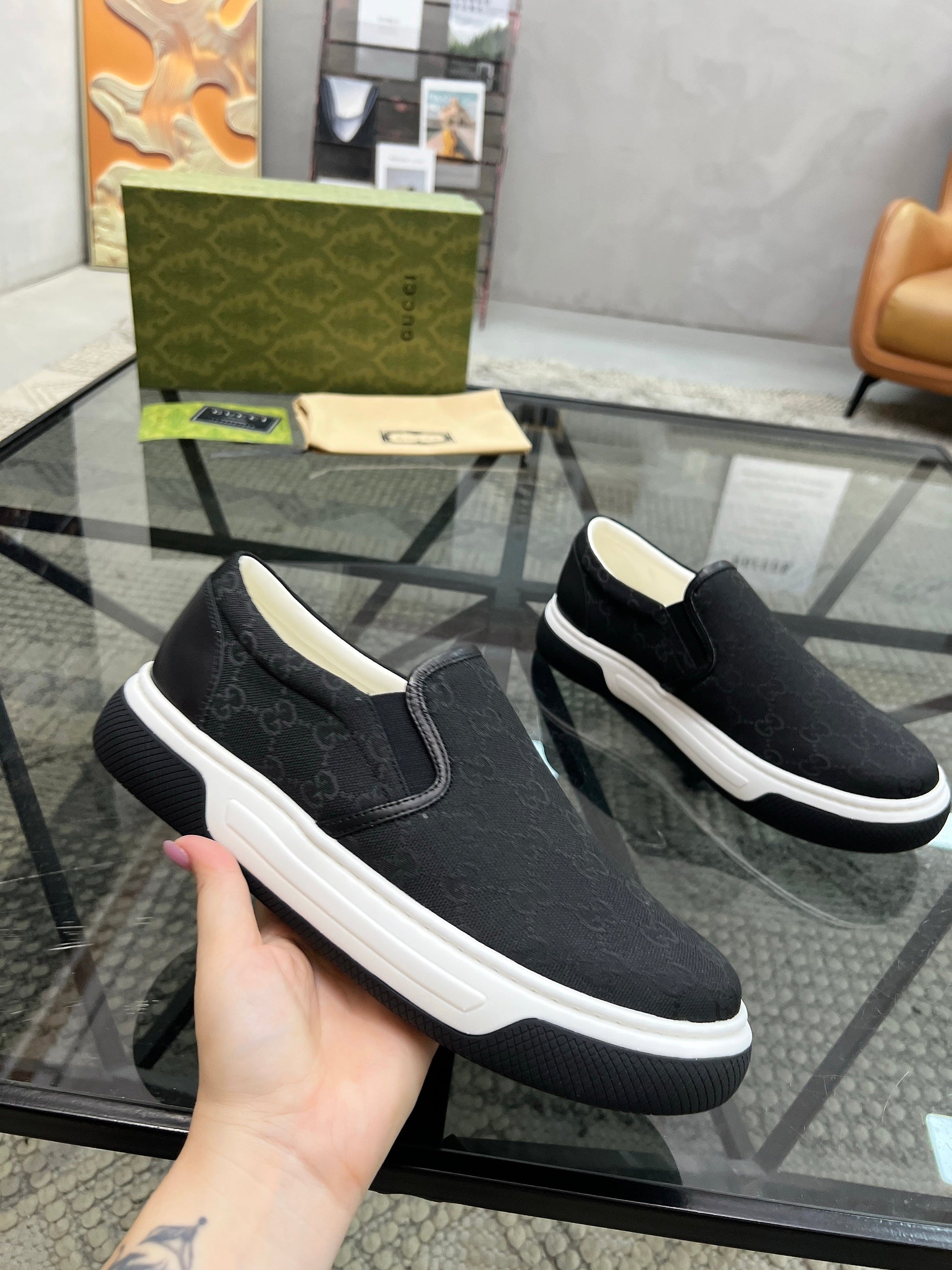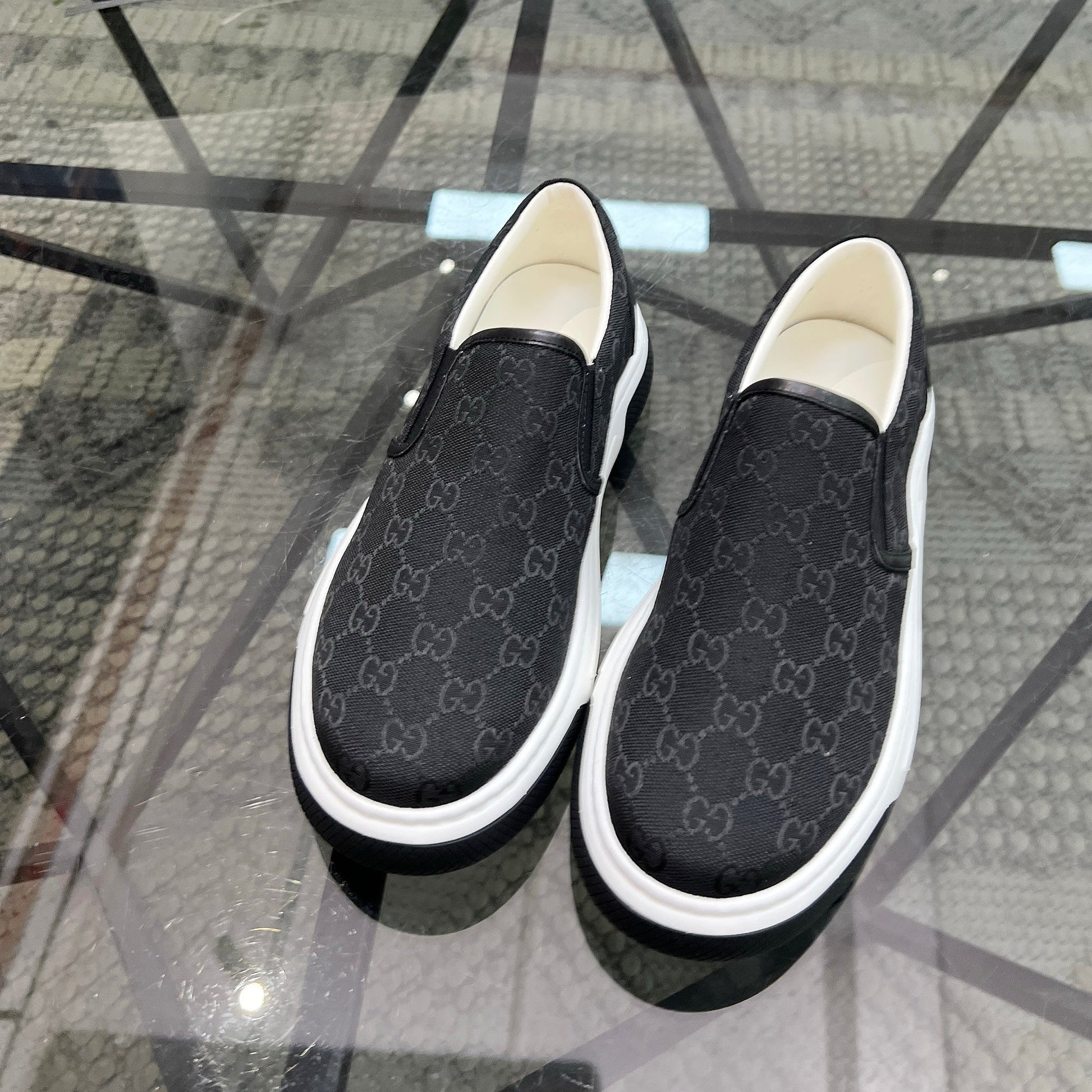 GG Men's Slip on Loafer Black Printed Fabric 721527