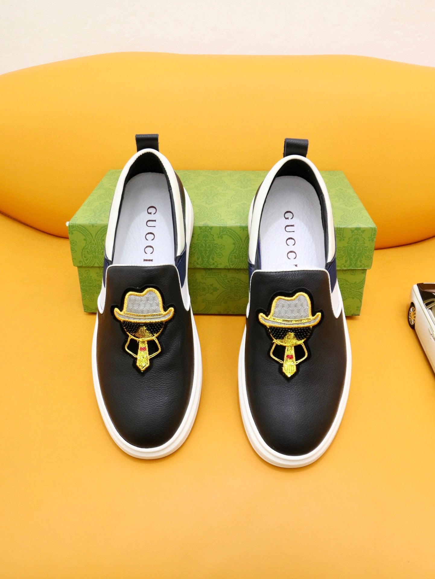 GG Men's Slip on Loafer White Black Cowhide 660094