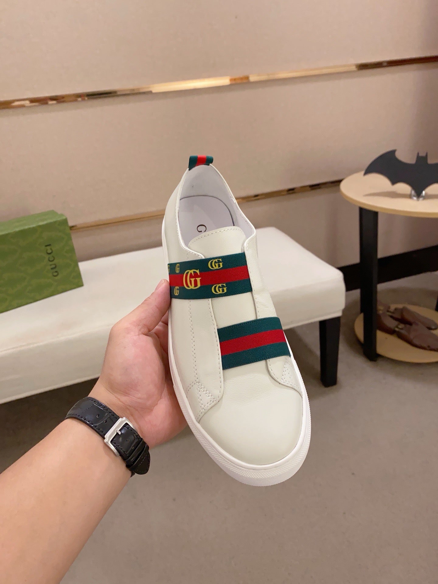 GG Men's Slip on Loafer White Cowhide 533945