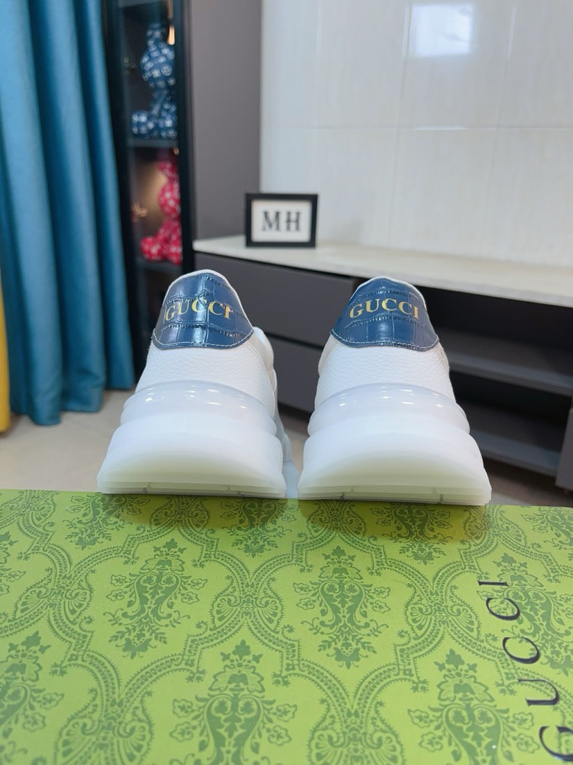 GG Men's Sneaker Beige White Canvas Calfskin 523339
