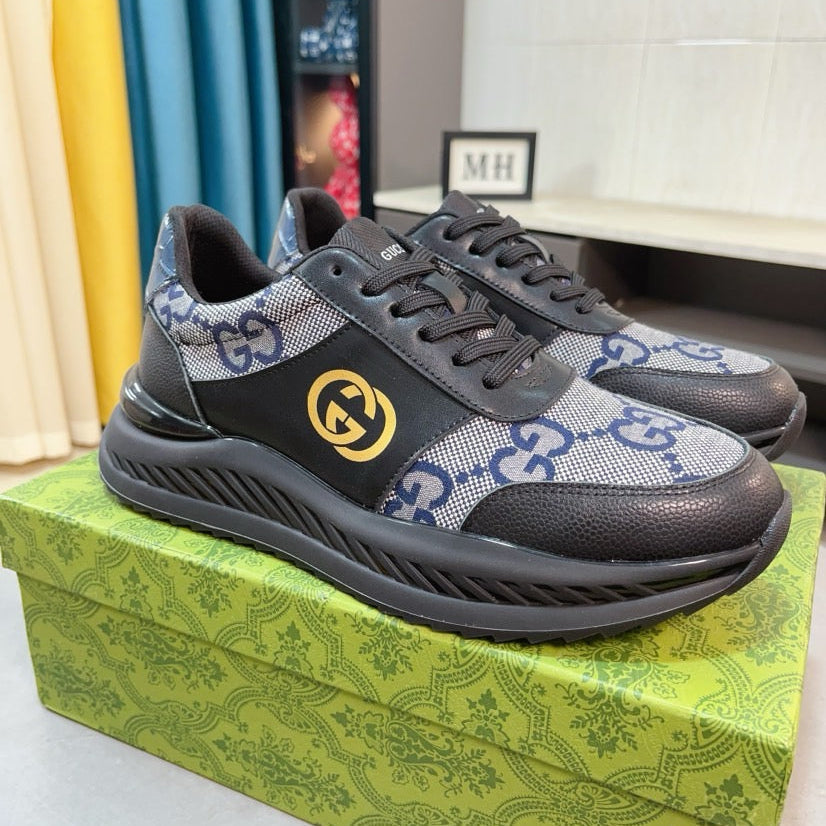GG Men's Sneaker Black Blue Canvas Calfskin 523336