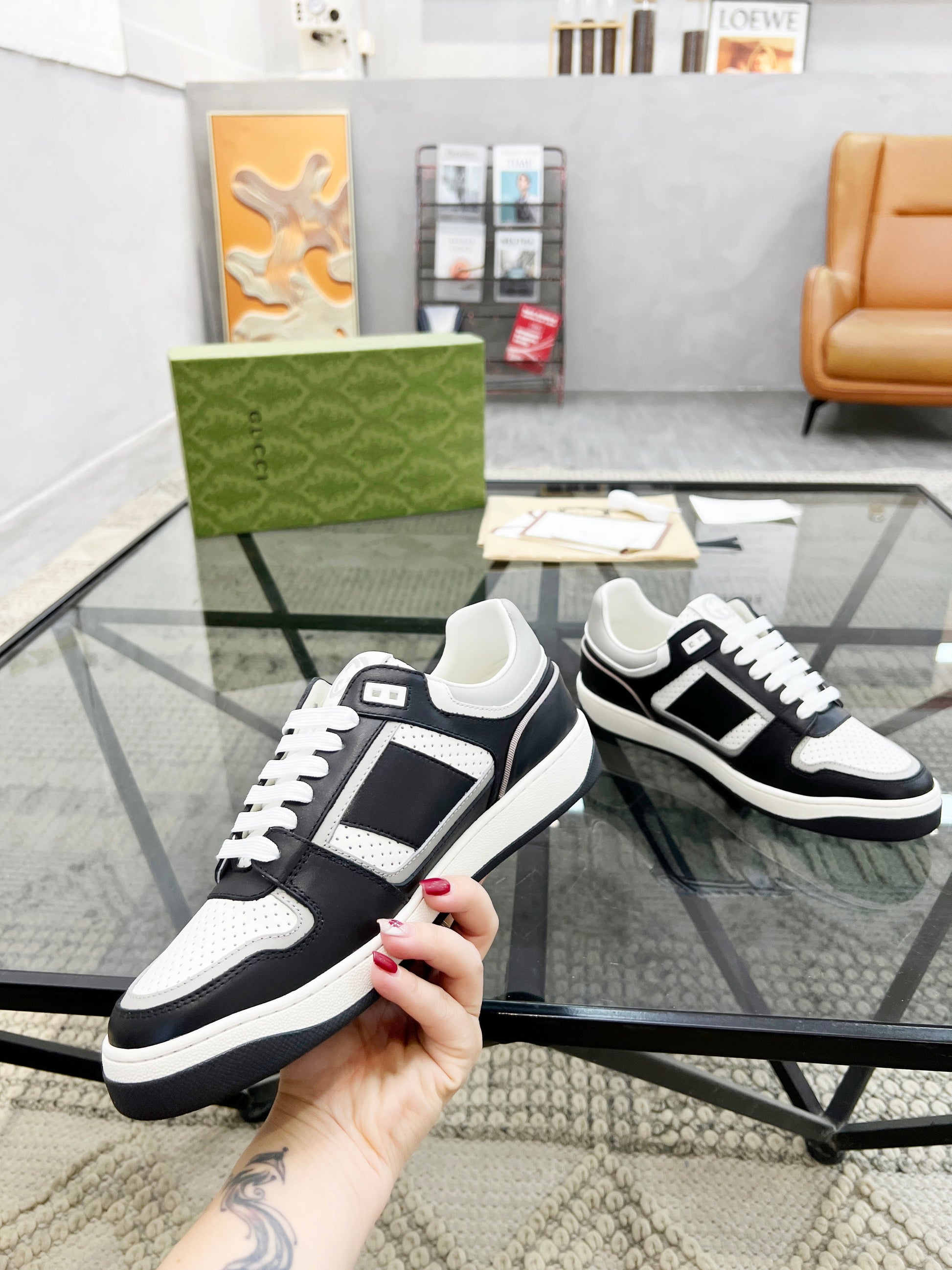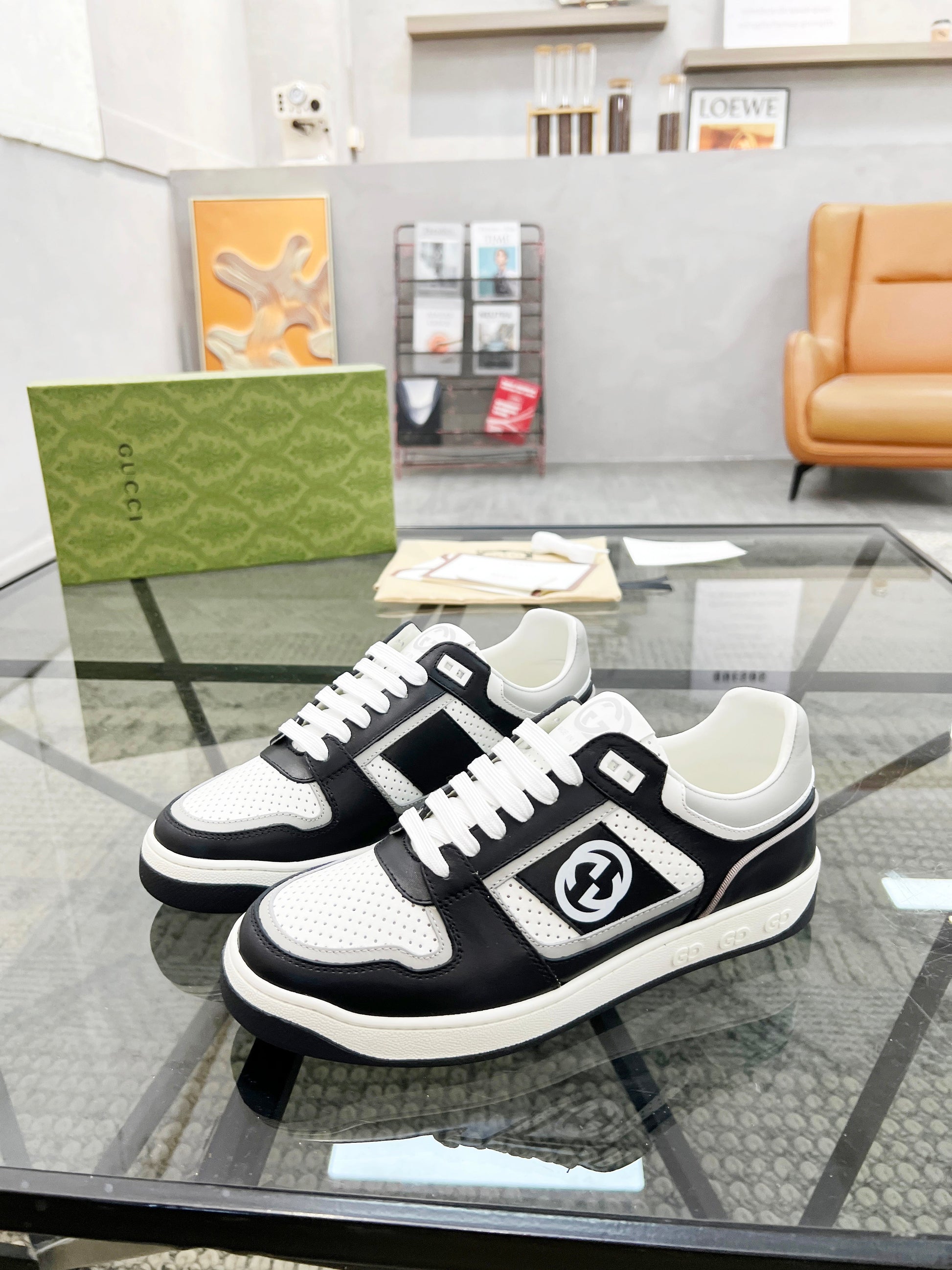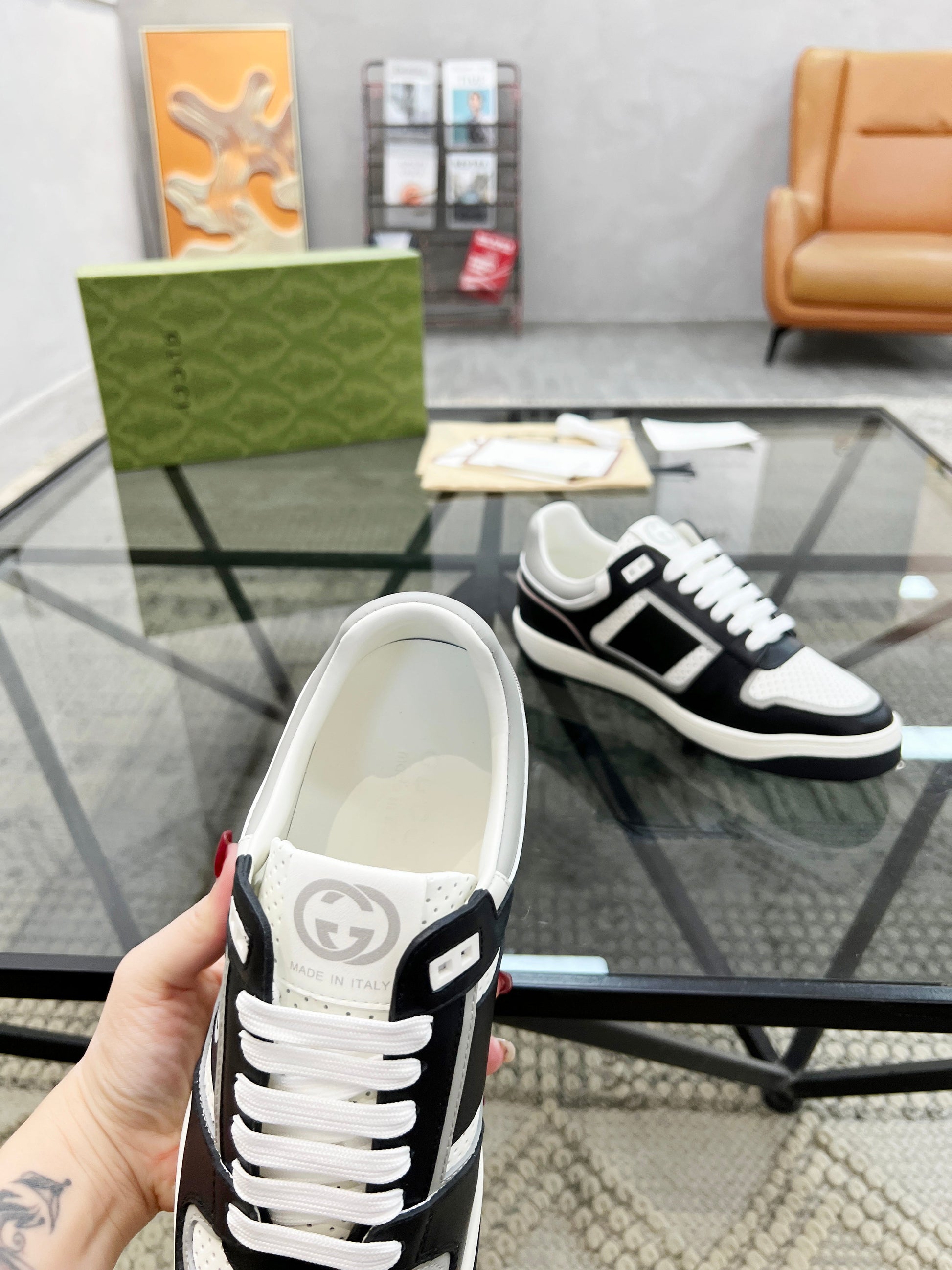 GG Men's Sneaker White Black Cowhide 525902