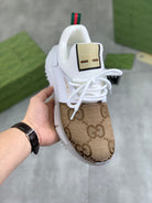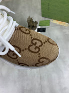 GG Men's Sneaker White Brown Calfskin Canvas 528940