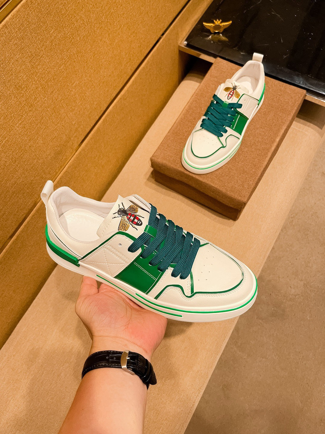GG Men's Sneaker White Green Cowhide 671709