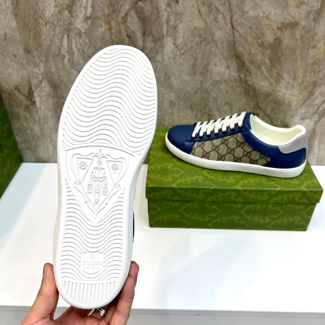 GG Men's Supreme Sneaker Navy Blue Canvas Cowhide 525940