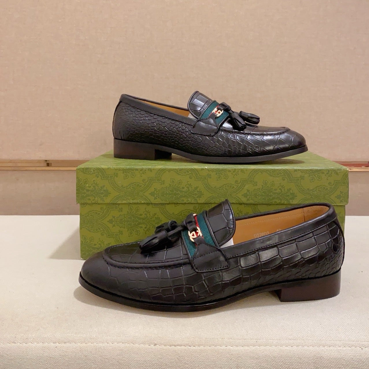 GG Men's Tassel Loafer Black Embossed Cowhide 573361