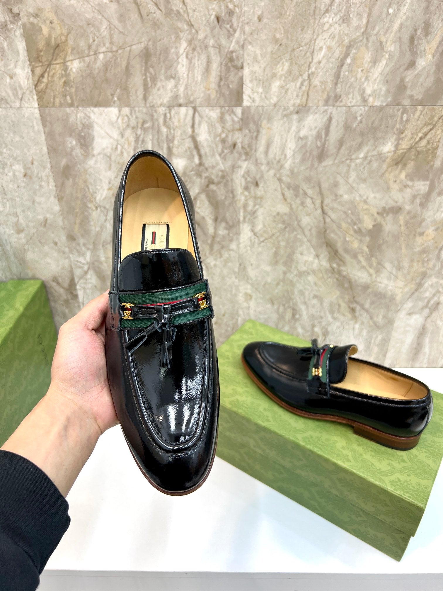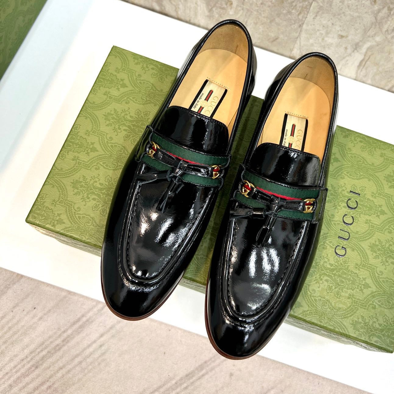 GG Men's Tassel Loafer Black Patent Leather 548745