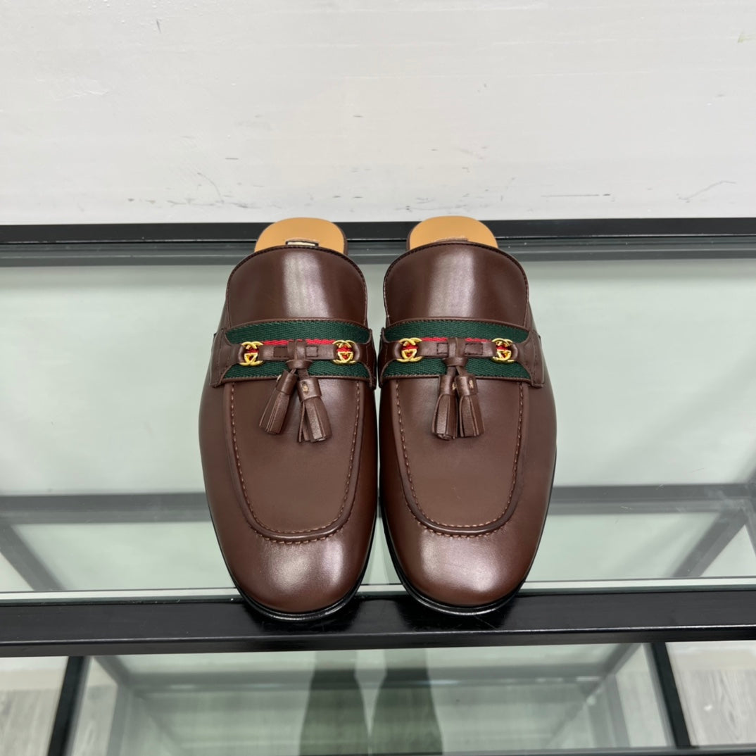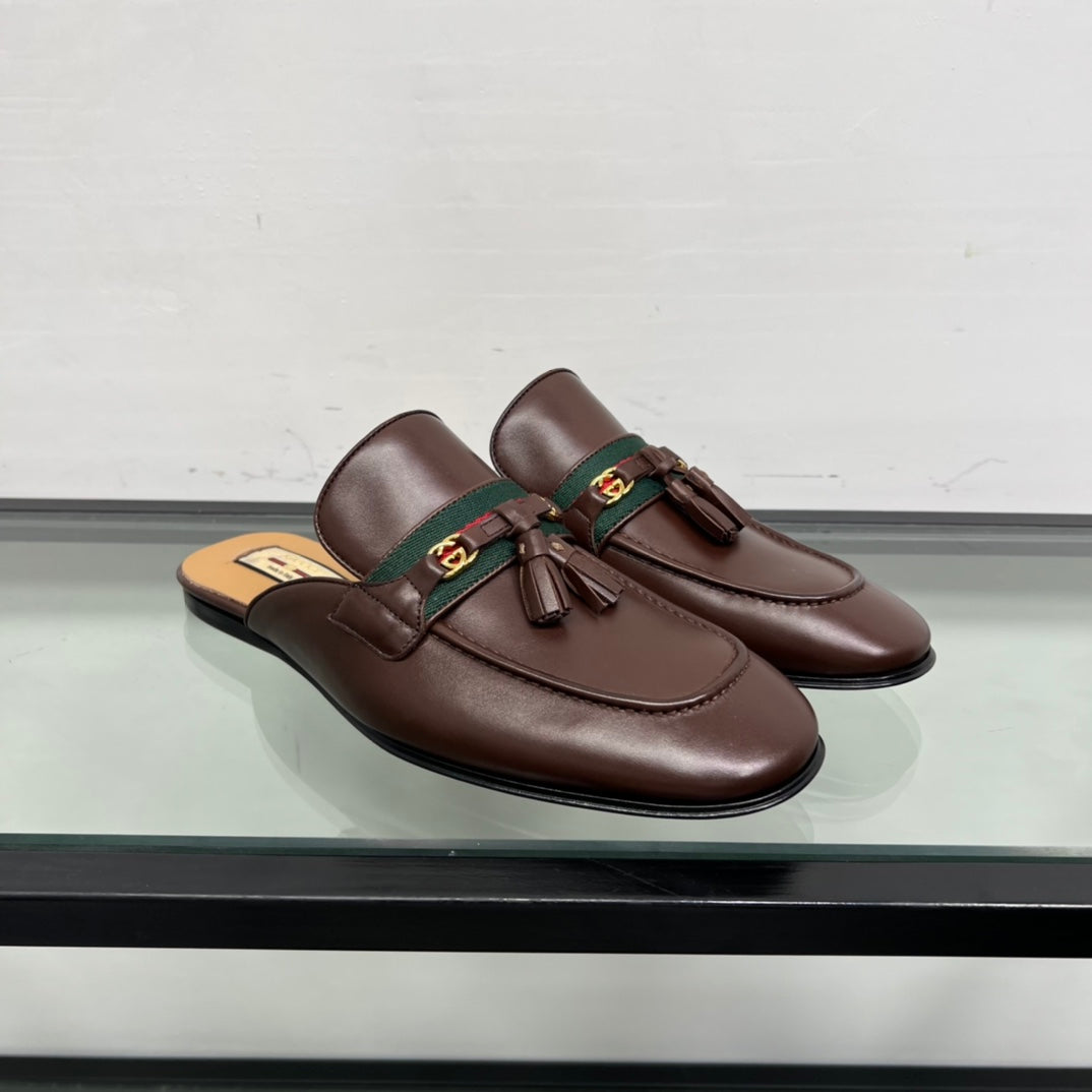 GG Men's Tassel Mule Brown Calfskin 559045