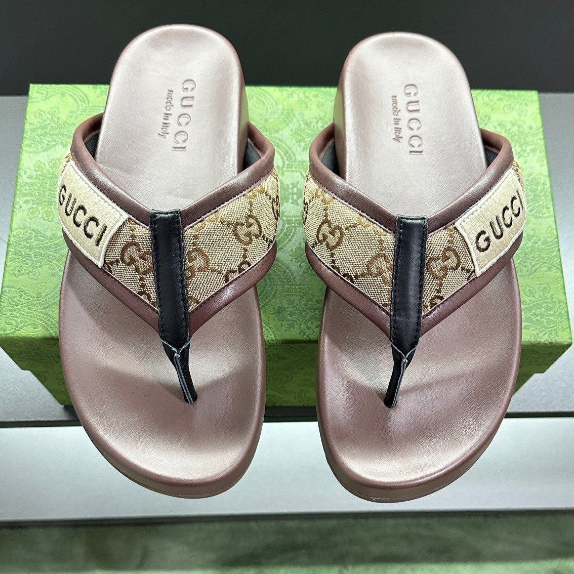 GG Men's Thong Sandals Brown Polyester Leather 547249