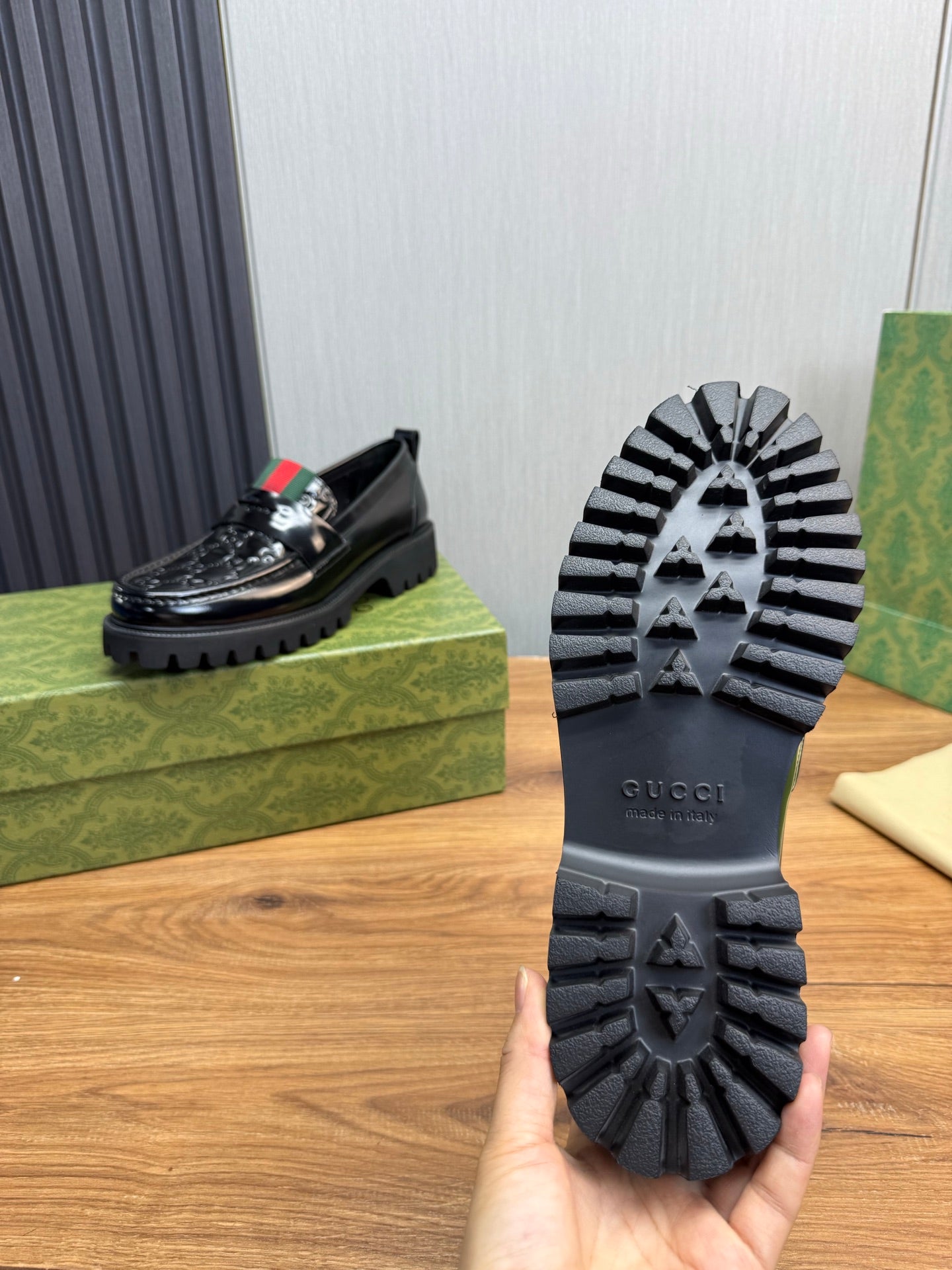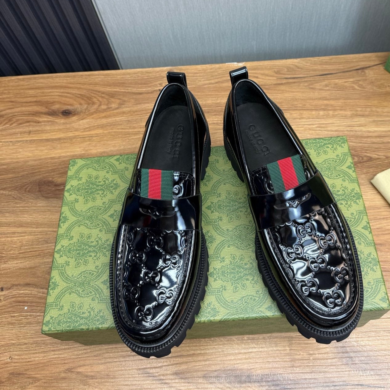 GG Men's Web Loafer Black Patent Leather 724592