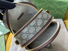GG MULTI-FUNCTION MINI 19 BACKPACK IN BEIGE AND BROWN CANVAS