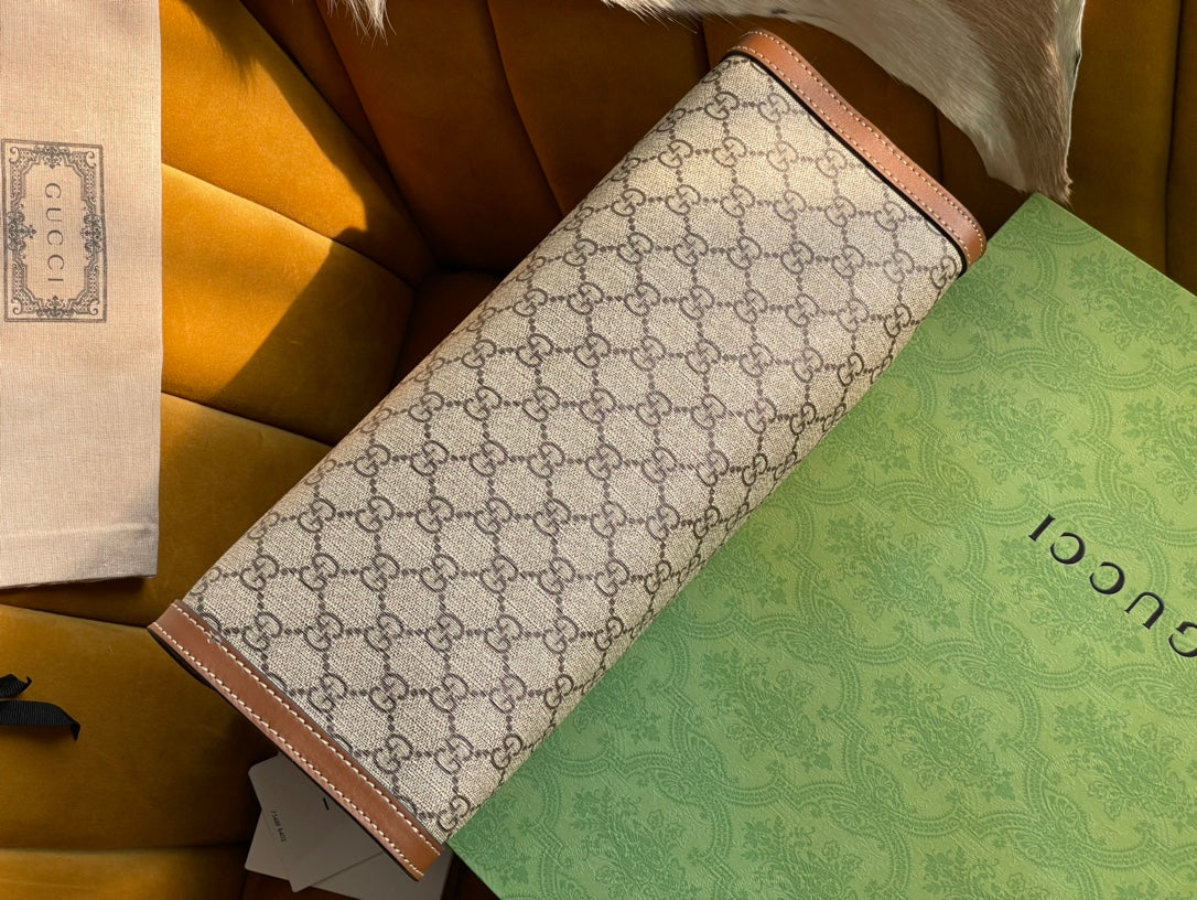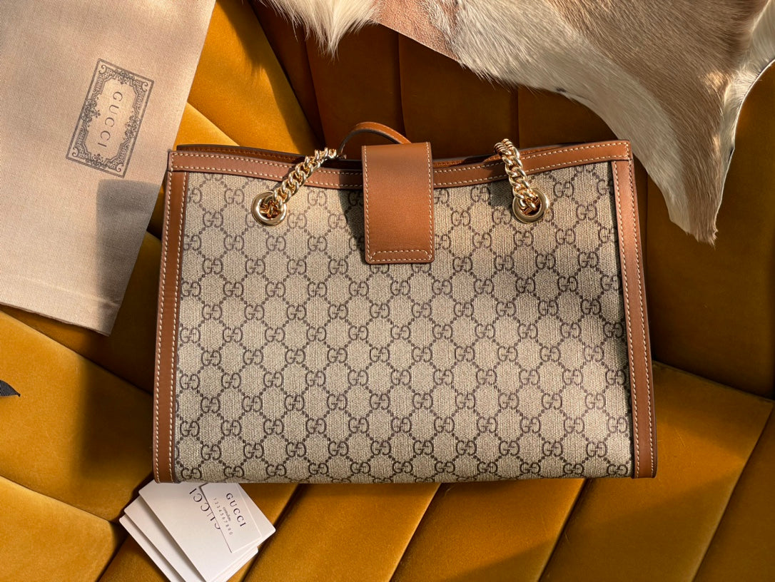 GG PADLOCK LARGE 35 SHOULDER BAG BEIGE CANVAS AND BROWN CALFSKIN