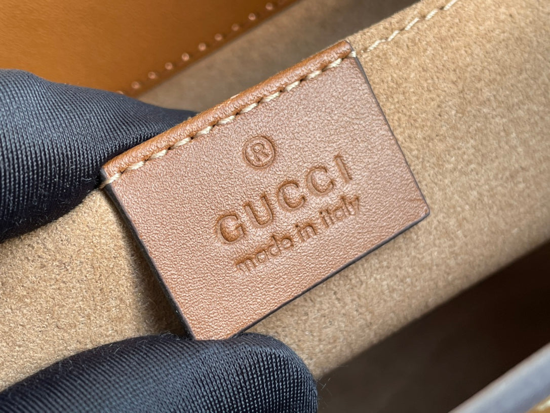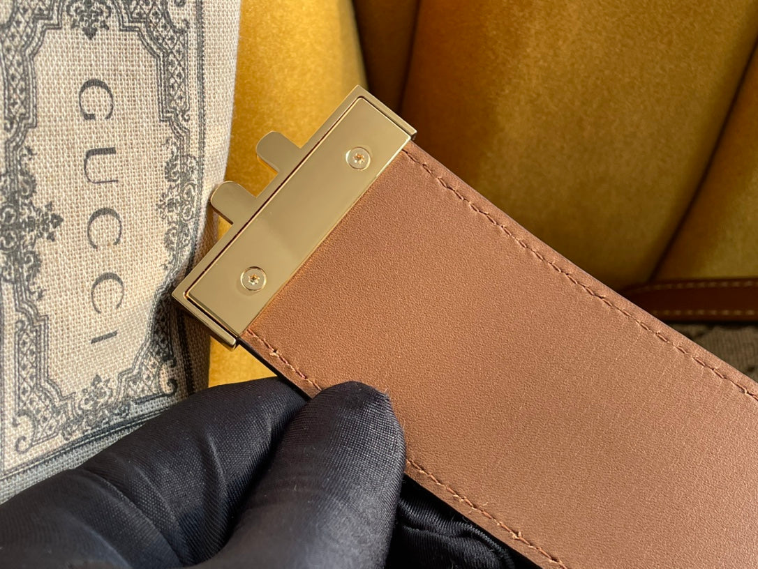 GG PADLOCK MEDIUM 26 SHOULDER BAG BEIGE CANVAS AND BROWN CALFSKIN