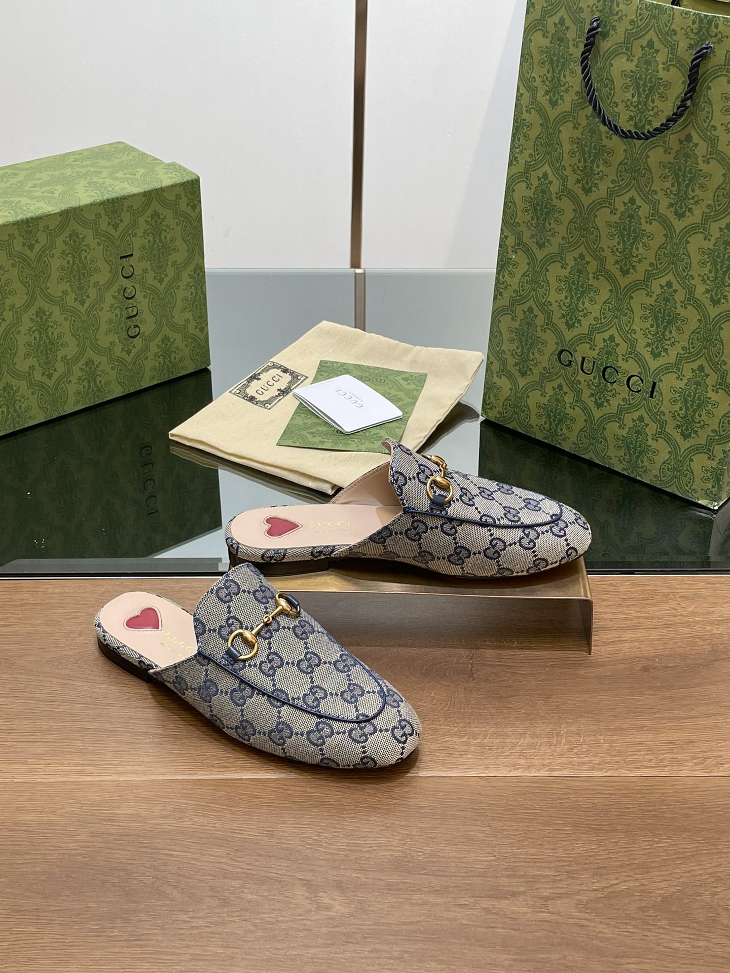 GG PRINCETOWN MULES LIGHT GRAY FABRIC