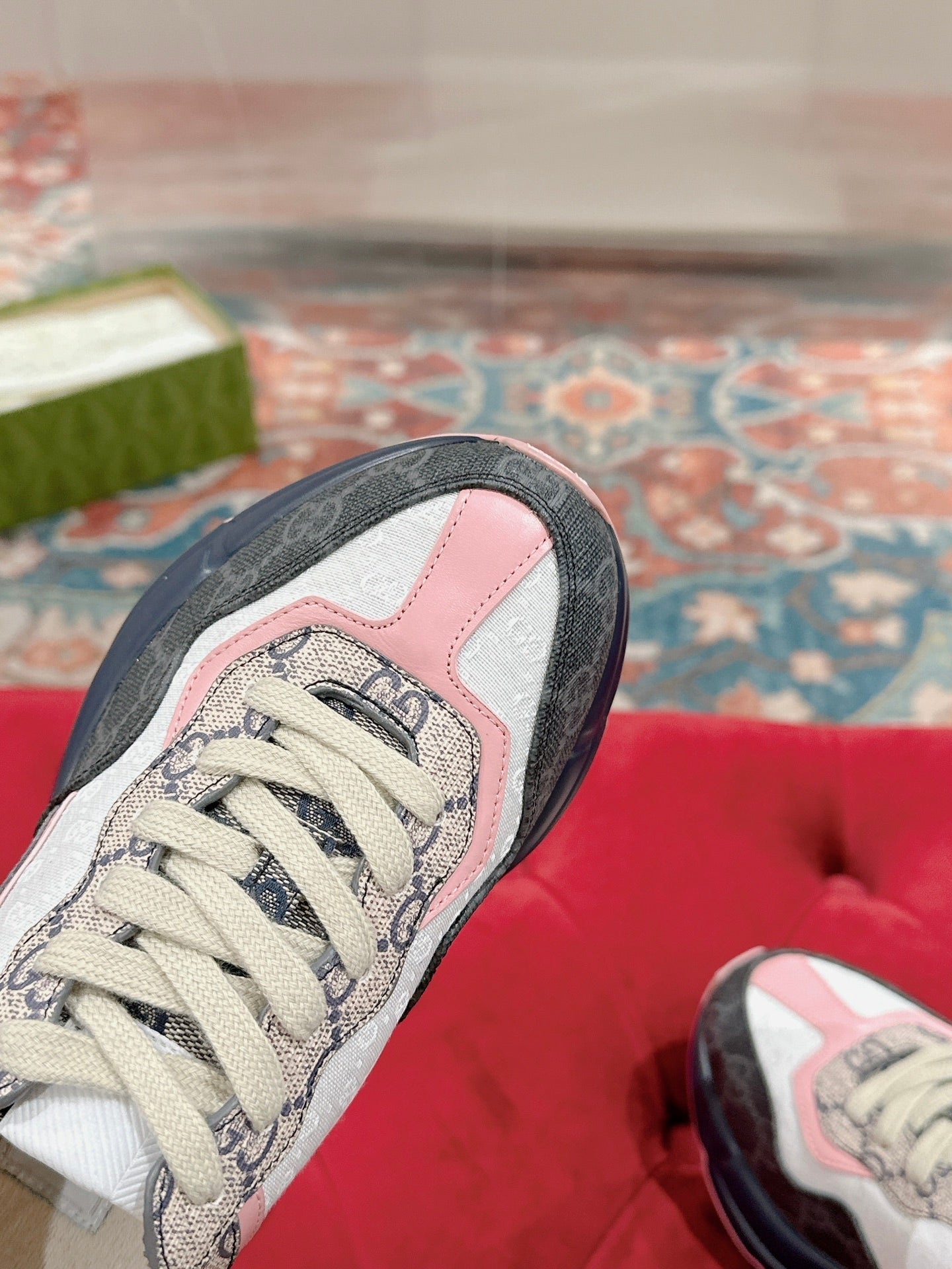 GG RHYTON TRAINER CHARCOAL AND WHITE CALFSKIN