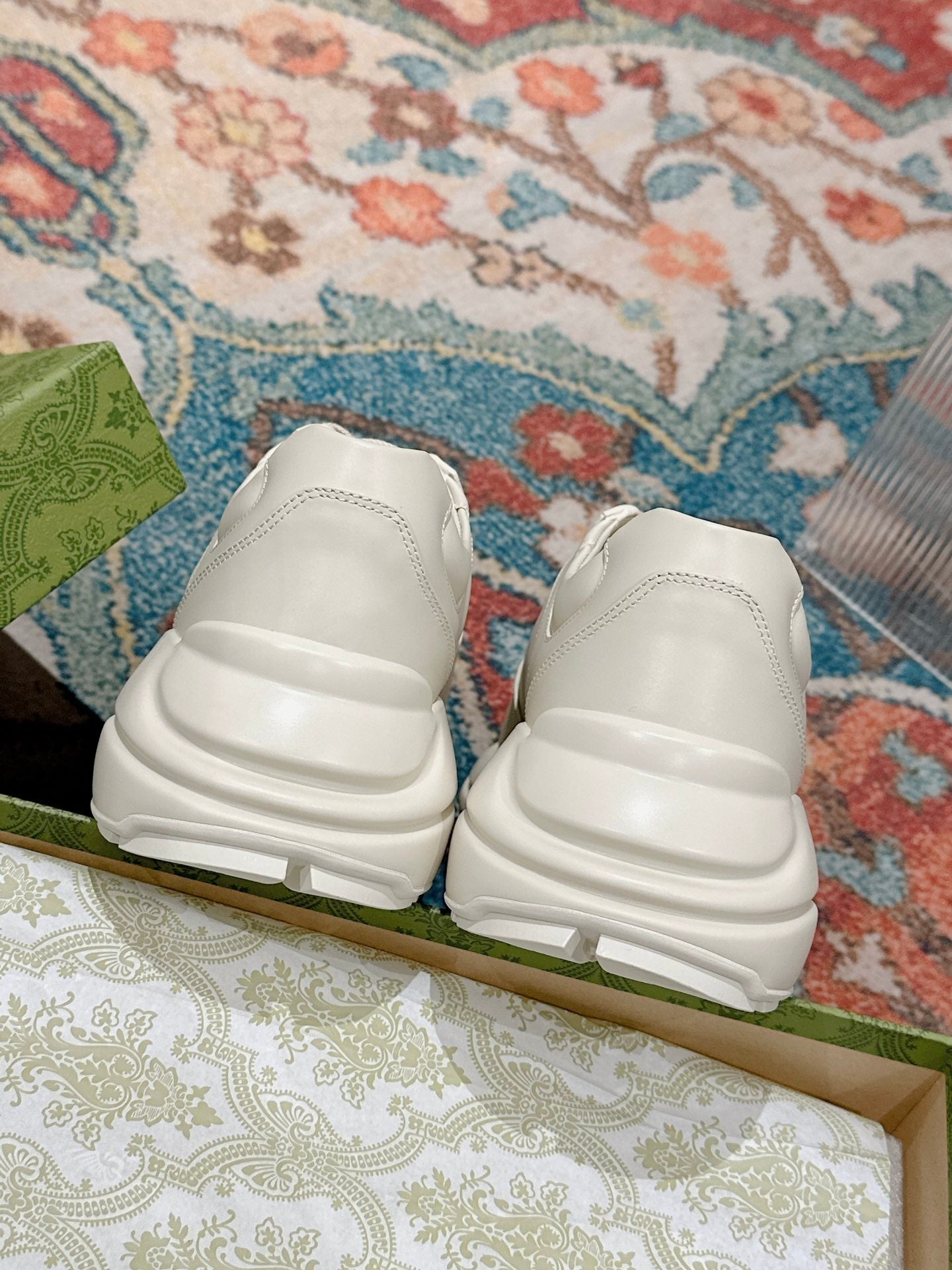 GG RHYTON TRAINER WHITE CALFSKIN WITH PINK LOGO