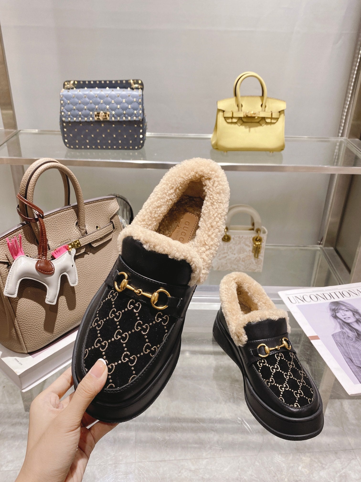 GG Snow Boots Black Cowhide Wool 576234