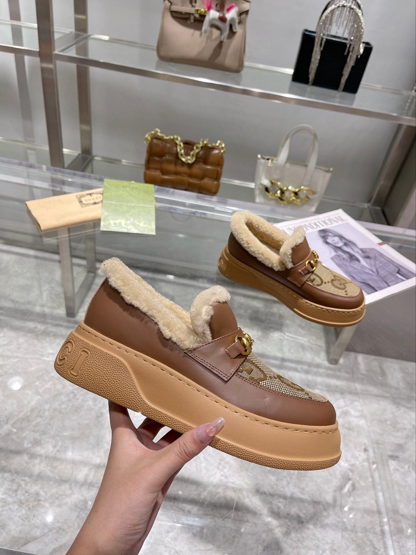 - Material: Calfskin Denim Wool