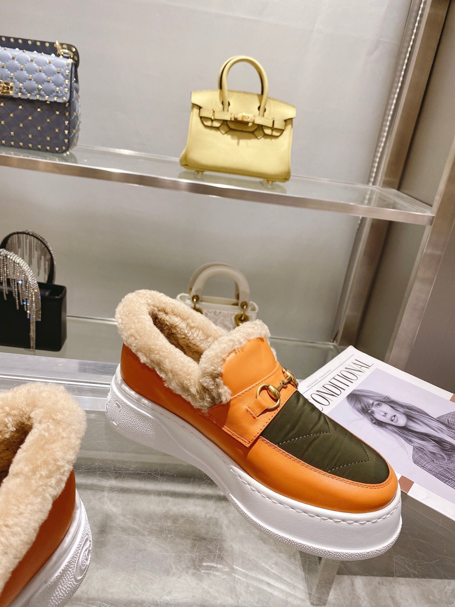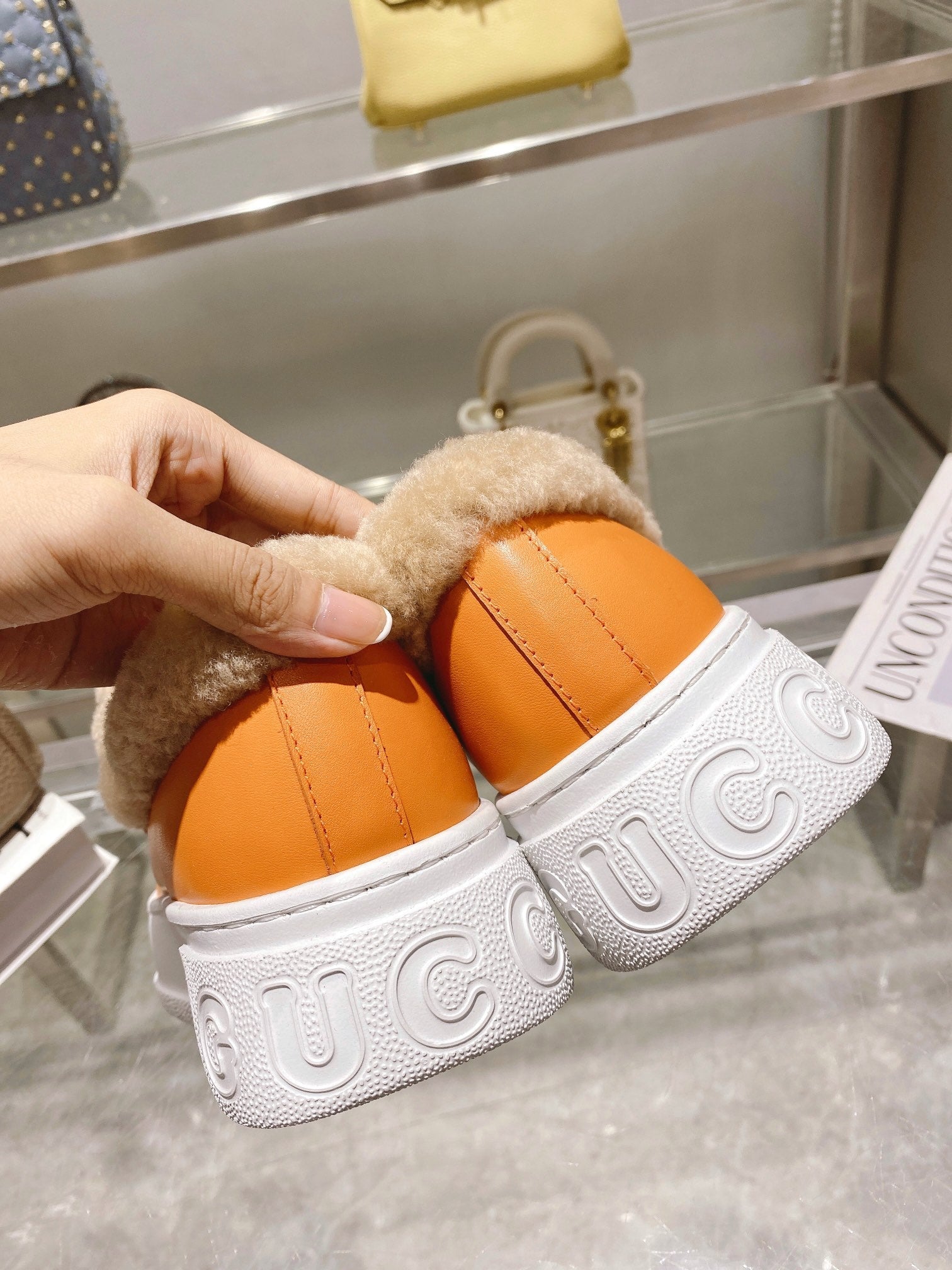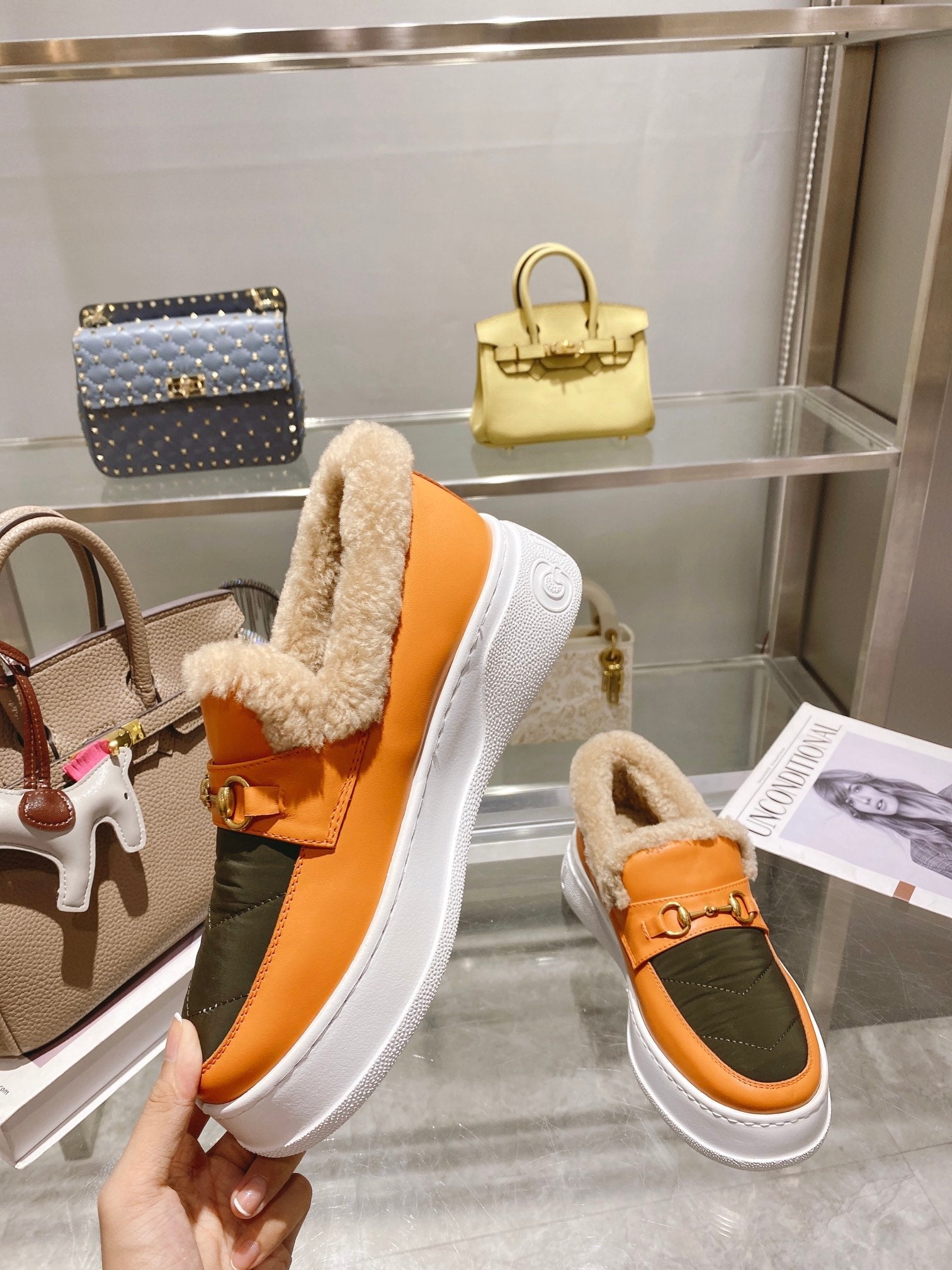 GG Snow Boots Orange Olive Cowhide Wool 576233