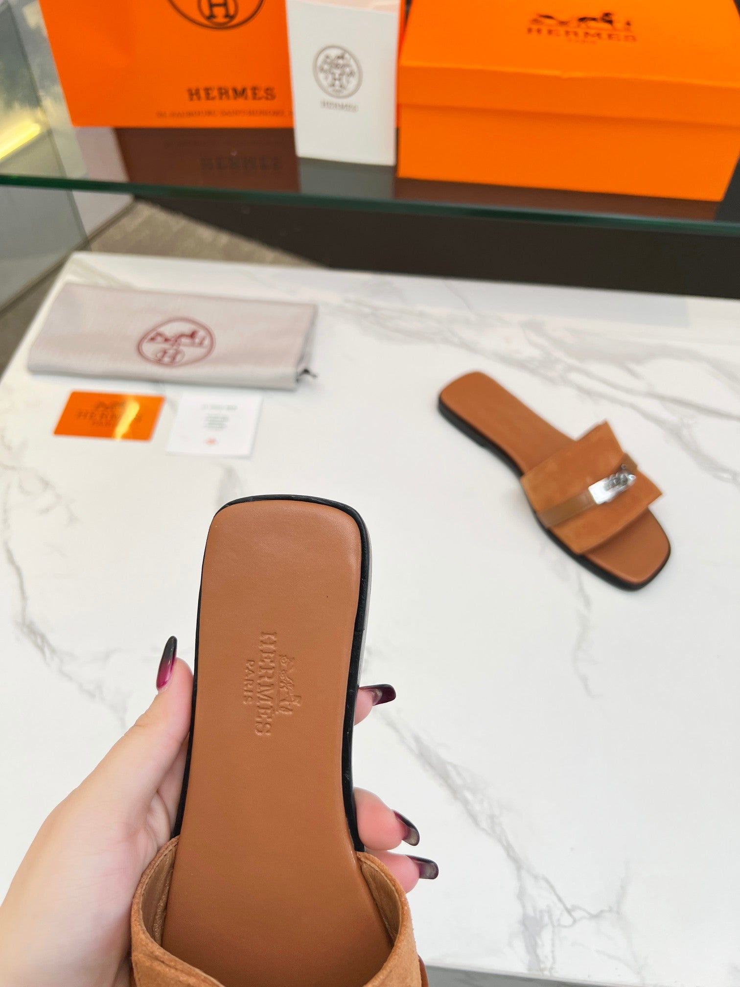 - Material: Suede, Calfskin