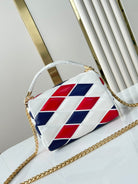 GO-14 MM 23 IN WHITE RED MIX NAVY BLUE QUILTED LAMBSKIN GOLD HARDWARE