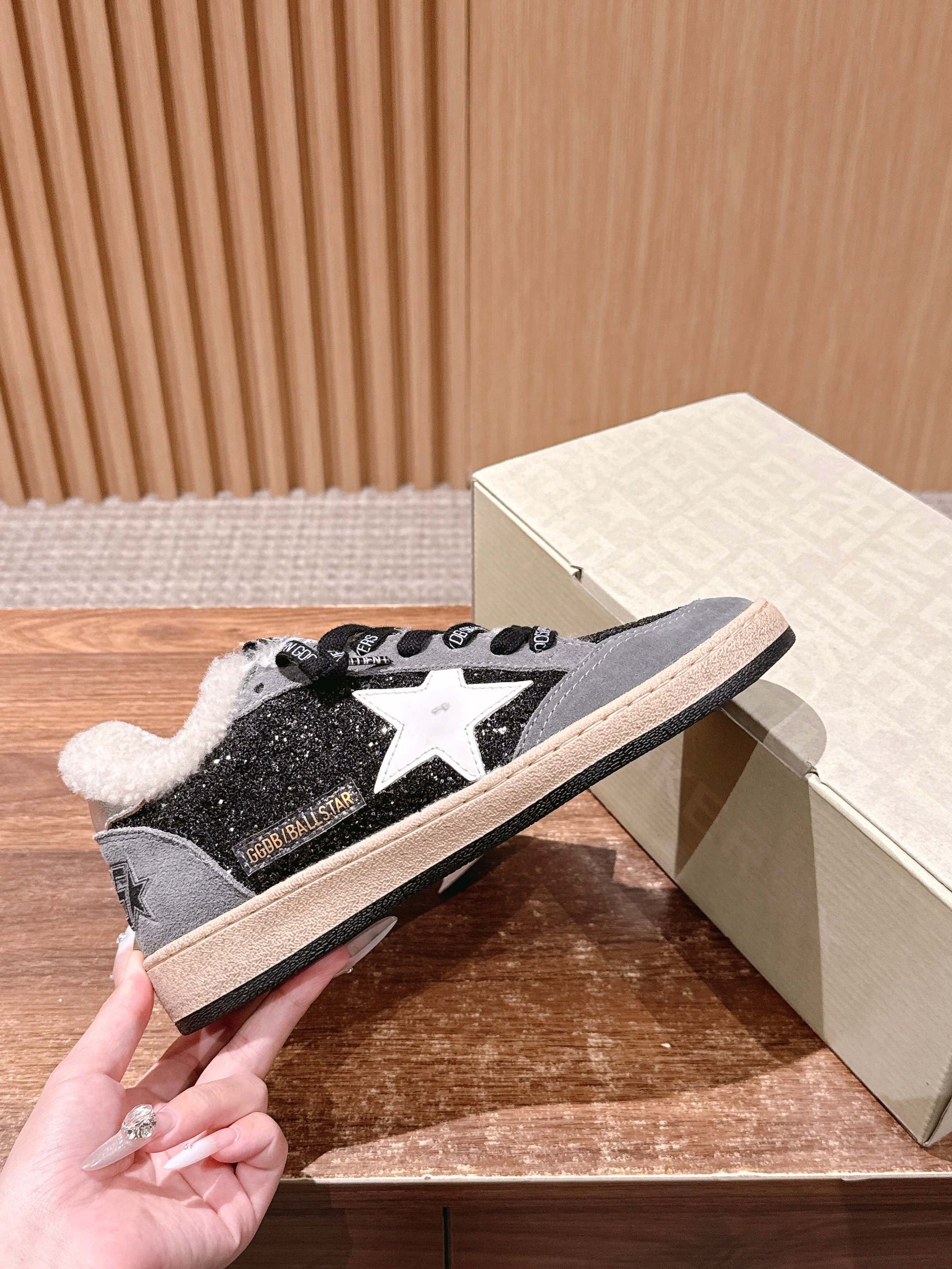 Golden Goose 2025 Wool-Lined Dirty Sneaker Light Gray mix Black Suede 444261