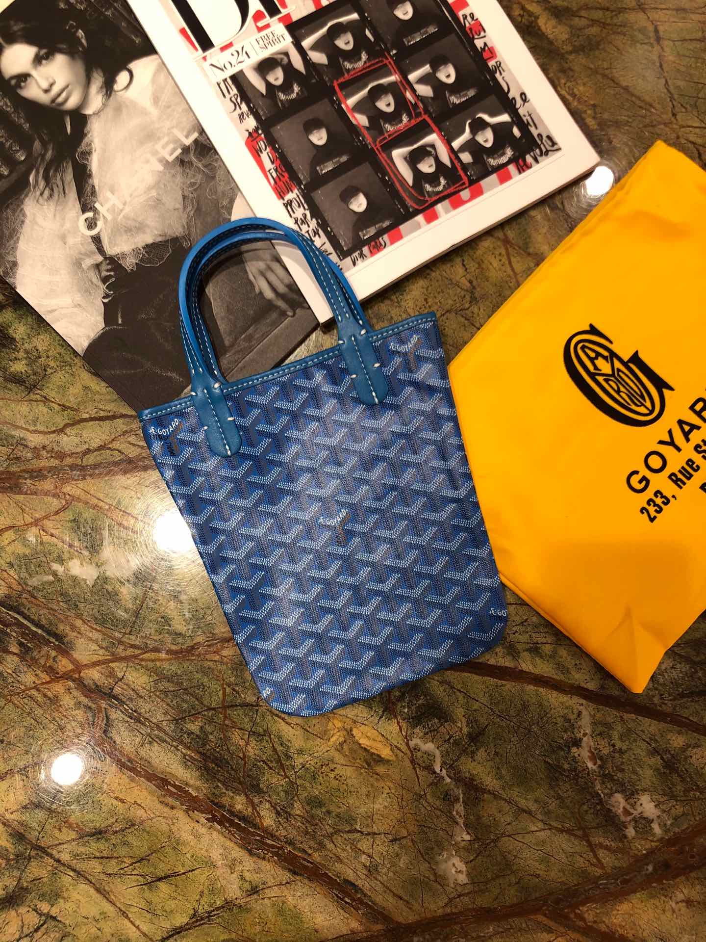 - Material: Goyardine canvas & chevroches calfskin