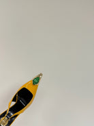 GREEN GEM-STUDDED SLINGBACK PUMPS IN YELLOW PATENT CALFSKIN