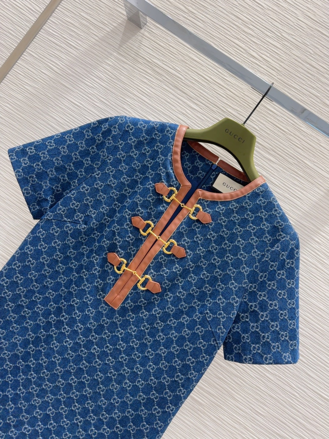 Gucci 2025 Denim Dress Blue Brown Cotton