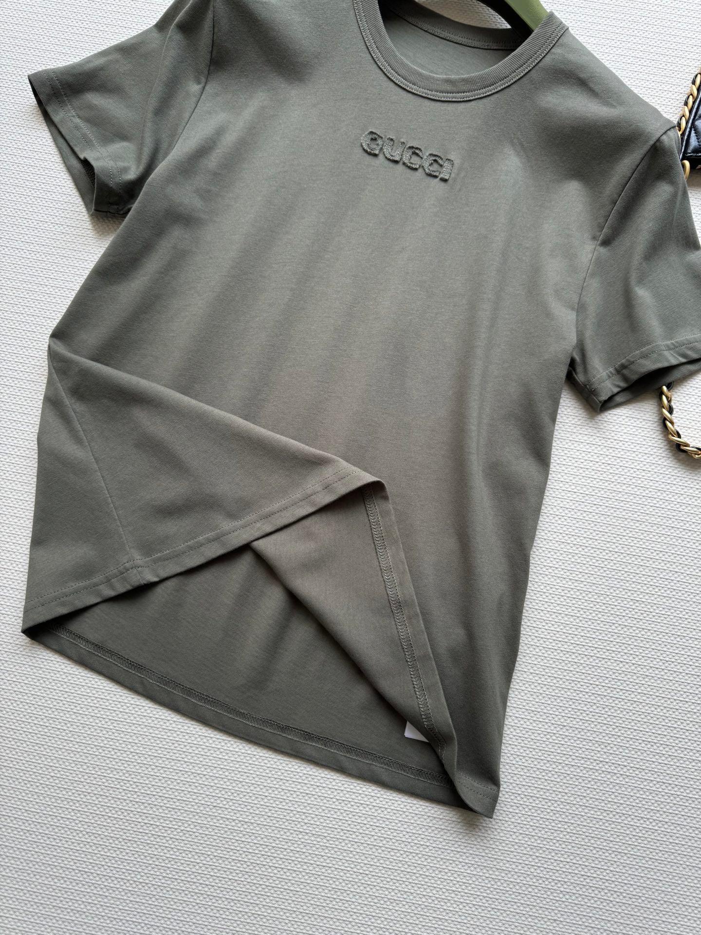 Gucci 2025 Embroidered Jersey T-shirt Dark Green Cotton